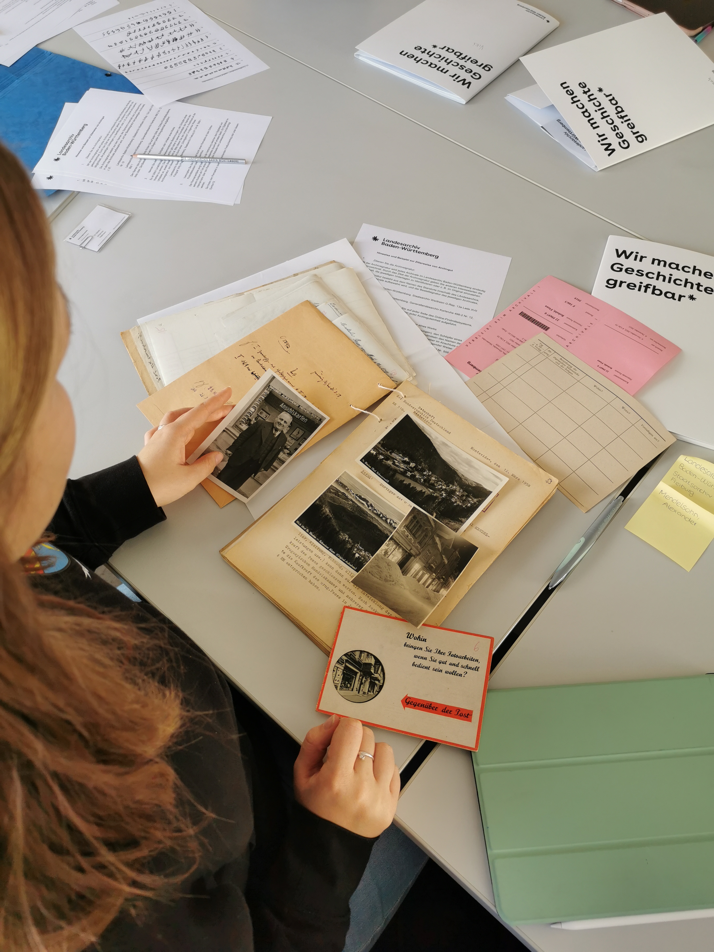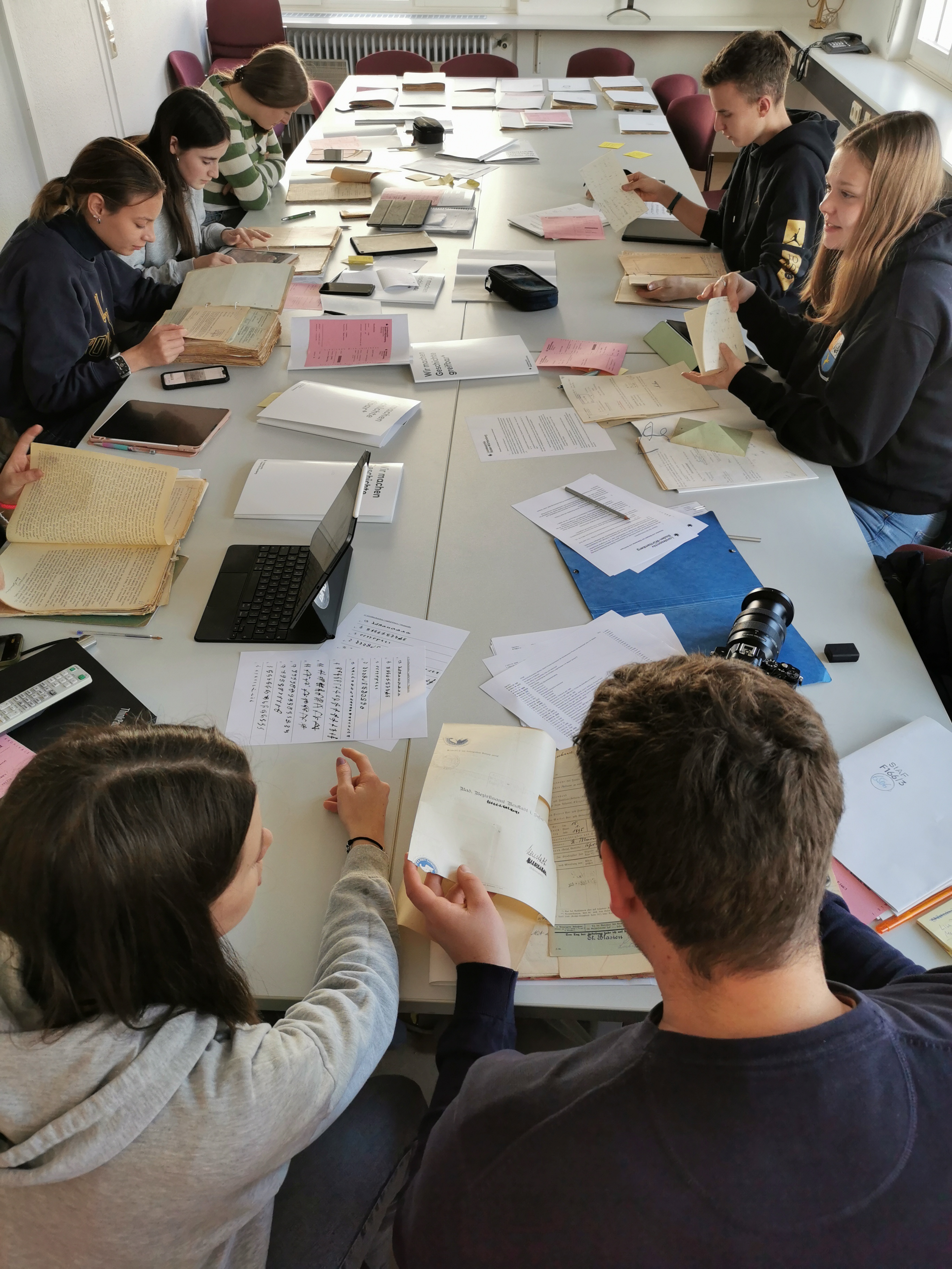 Die Recherche ergänzte die Vorrecherche der Schülerinnen und Schüler, die bereits über einige Quellen verfügten: Zeitungsartikel, Archivalien aus dem Stadtarchiv St. Blasien und dem Kreismuseum St. Blasien, Digitalisate aus unterschiedlichsten Landes- und Staatsarchiven, Anzeigen aus Kurzzeitschriften sowie Erinnerungen von Angehörigen der Verfolgten. Dies jetzt neu gewonnenen Erkenntnisse zu den Schicksalen der verfolgten Personen sowie faszinierende Fotos aus der Vergangenheit halfen dem Kurs, sein Bild weiter zu vervollständigen.