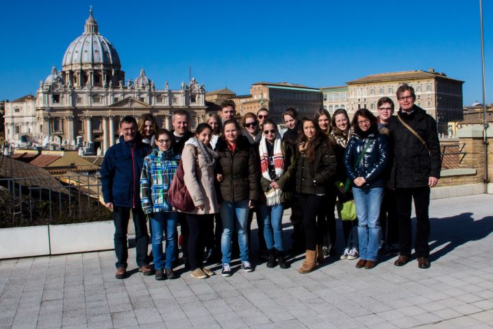 13 Schülerinnen und Schüler der Kursstufe, begleitet von Kollegslehrern, führten vom 7. bis 12. Februar 2013 eine Studienfahrt nach Rom durch. Neben den Monumenten des antiken Rom (Kolosseum, Kapitol, Forum Romanum, Ostia antica) bildeten die christlichen Stätten (Petersdom, St. Paul vor den Mauern, Sant`Ignazio, Domitilla-Katakomben) einen zweiten Schwerpunkt. Gespräche mit Verantwortlichen bei Radio Vatikan, in der Generalskurie des Jesuitenordens sowie in der päpstlichen Universität Gregoriana boten interessante Einblicke in die aktuelle Situation der Kirche.