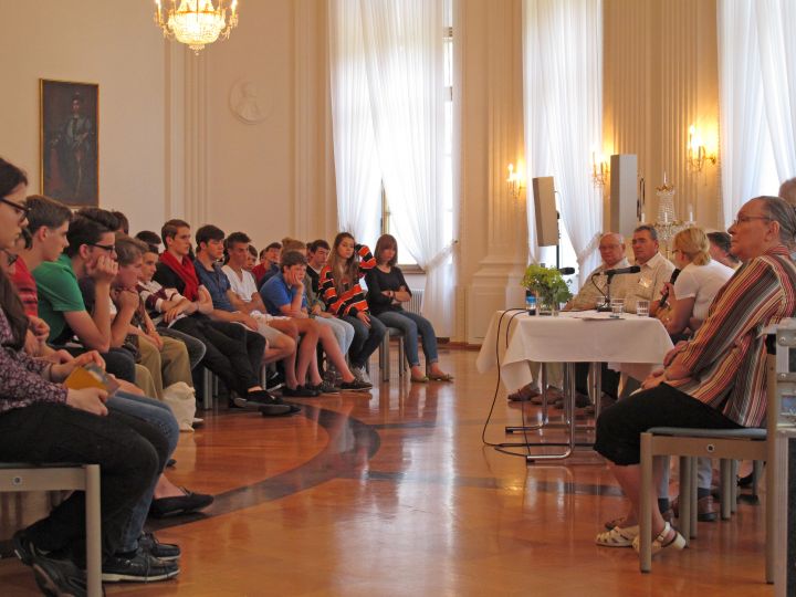 Zehn ehemalige Häftlinge der Konzentrationslager Auschwitz, Majdanek, Ravensbrück, Sachsenhausen, Flossenbürg, Mauthausen, Groß Rosen und Potulice waren am Freitagvormittag (15.06.) zu Gast am Kolleg. Das Maximilian-Kolbe-Werk, Hilfswerk für die Überlebenden der Konzentrationslager und Ghettos, hat diese KZ-Überlebenden zu einem Erholungs- und Begegnungsaufenthalt nach Deutschland eingeladen. Im Festsaal erzählten die Überlebenden vor rund 200 Schülerinnen und Schülern ihre Geschichte und Erlebnisse unter der deutschen Besatzung in Polen und beantworteten deren Fragen.