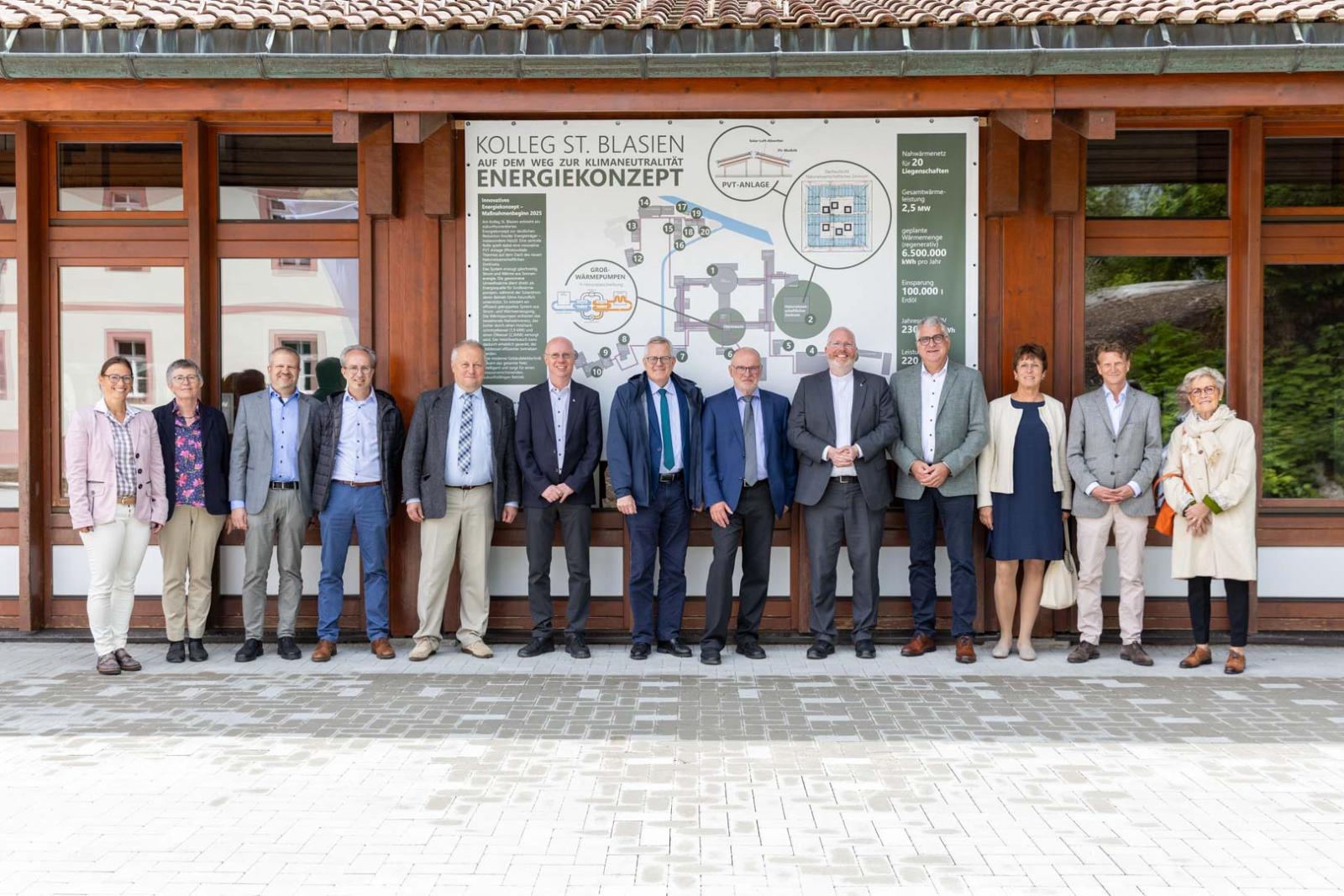 Im Anschluss an die Trägervereinssitzung zu Pfingsten wurde das Bauschild für das Projekt „Klimaneutrales Kolleg“ enthüllt. Mit diesem Zukunftsprojekt wird insbesondere die Wärmeversorgung des Kollegs und des vom Kolleg betriebenen Nahwärmenetzes auf ein klimaschützendes und nachhaltiges System umgestellt. Mittels einer PVT-Anlage (Photovoltaik für Strom und „T“ für ein thermisches Absorber-System) auf dem Dach des neugebauten Naturwissenschaftlichen Zentrums werden künftig Wärmepumpen betrieben. Damit wird eine jährliche Einsparung von 100.000 Liter Öl erreicht. Das gesamt Projekt hat ein Investitionsvolumen von ca. 4 Mio. Euro und wird durch die „BAFA – Bundesförderung für effiziente Wärmenetze“ sowie durch die Unterstützung der Träger des Kollegs ermöglicht. Ausführliche Informationen über uns Energiekonzept finden Sie auf unserer Website.
