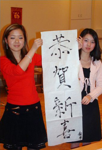Das Jahr des Hundes wurde entsprechend dem Mondkalender gestern und heute feierlich begrüßt - natürlich besonders feierlich in China, aber auch im Kolleg. Ungefähr 70 Jugendliche (Chinesen und deutsche Chinesisch-Schüler) haben sich zur Feier des Frühlingsfestes versammelt. Es wurde reichlich gesungen, es wurden Gedichte rezitiert und Thai Chi vorgeführt. Natürlich wurde reichlich gegessen; wir haben eine traditionelle Teezeremonie erlebt, Kalligraphie geübt und ein landeskundliches Quiz durchgeführt. Dass der Tisch, an dem unsere Chinesischlehrerin Frau Dr. Wang saß, beim Quiz gewonnen hat, war nicht ganz so überraschend. Xin Nian Hao!