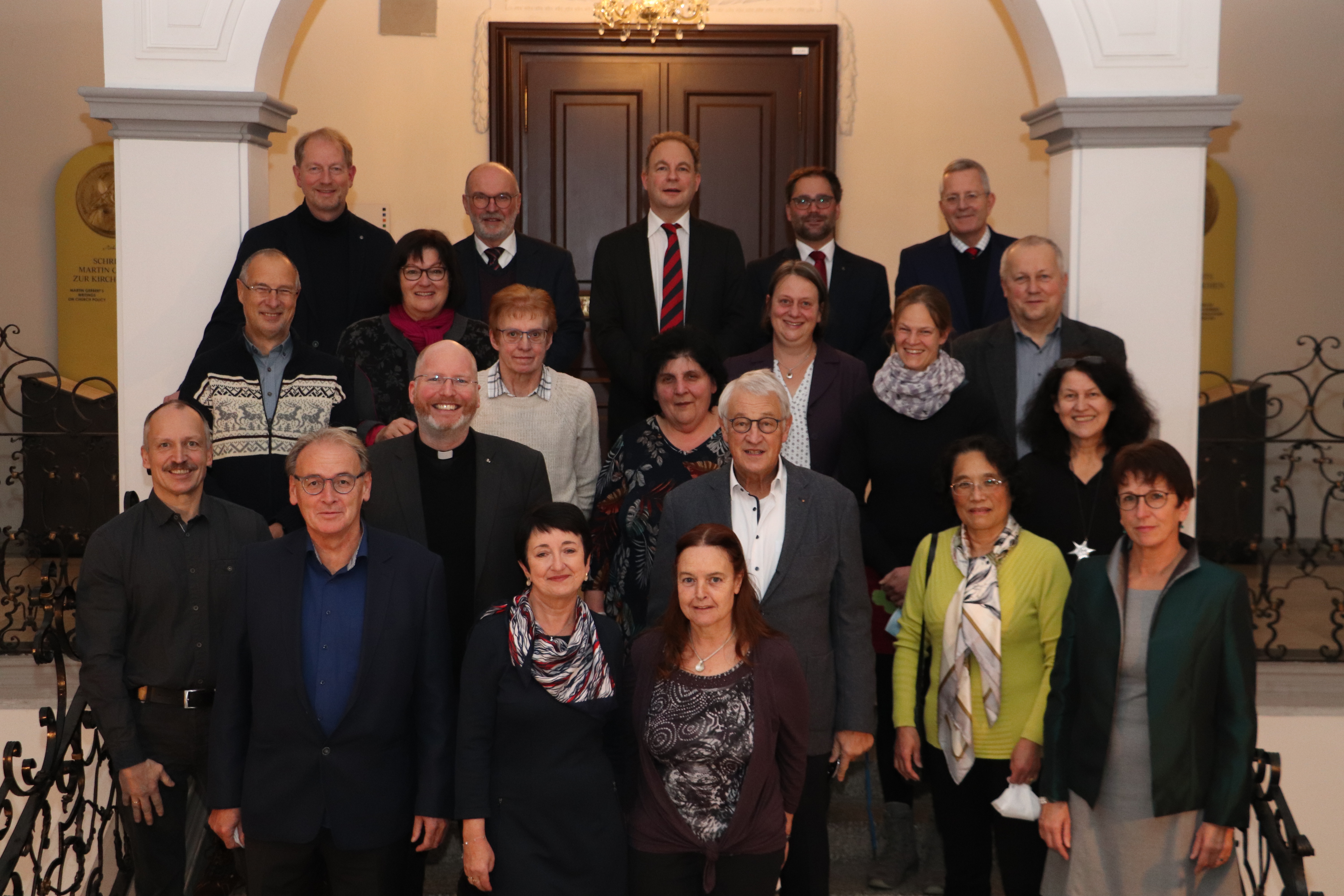 Die Kollegsleitung gratulierte bei einer Feierstunde am Donnerstagabend (9. Dezember) den langjährigen Mitarbeiterinnen und Mitarbeitern zu ihrem Dienstjubiläum. In diesem Jahr gab es erstmalig eine Jubilarfeier für zwei Jahrgänge, da die Ehrung im vergangenen Jahr wegen der Corona-Pandemie nicht durchgeführt werden konnte. Kollegsdirektor Pater Hans-Martin Rieder SJ, Schulleiter Michael Becker, Geschäftsführer Daniel Poznanski, MAV-Vorsitzende Barbara O’Reilly und Superior P. Ralf Klein SJ würdigten die langjährige Treue und Verbundenheit der Mitarbeiter zum Kolleg und dankten den Jubilaren für die geleistete Arbeit. Geehrt wurden Dr. Winfried Bull, Sigrid Ebner, Bernhard Schmitt (alle 40 Dienstjahre), Thomas Warlo (35 Dienstjahre), Karin Schelshorn (30 Dienstjahre), Patrick Lebrecht, Michael Neymeyer (beide jeweils 25 Dienstjahre), Beate Behringer, Clemens Disch, Bettina Geng, Christa Häfner, Gertrud Henrich, Cornelia Kaiser, Heidemarie Legler, Ewa Maschtalski, Natalija Molodko, Claudia Pollex, Johannes Schnippering, Ute Sütel, Dr. Peili Wang (alle 20 Dienstjahre), Monika Fischer, Maria Kiefer, Holger Köpcke, Bianca Ostermann, Matthias Schopp und Anja Zöllner (alle 10 Dienstjahre).