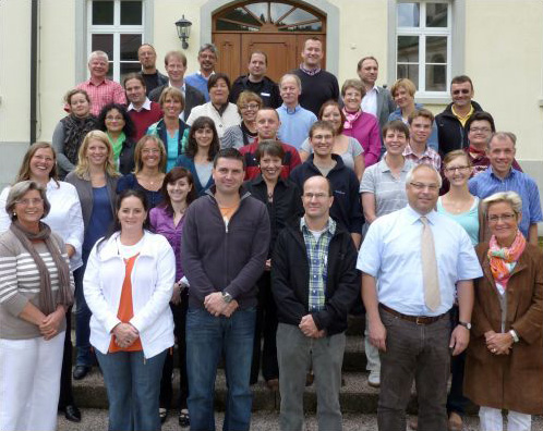 Das Kolleg kommt schon seit einigen Tagen wieder auf "Betriebstemperatur". So macht z.B. die besonders große Oberstufe sehr viel Arbeit; aber Herr Leber ist jetzt zufrieden: alle Schülerinnen und Schüler haben einen Stundenplan, der "passt". Die neuen Kolleginnen und Kollegen in Schule und Internat haben sich am vergangenen Donnerstag und Freitag einstimmen lassen auf ihren neuen Arbeitsplatz. Am Freitag war dann auch die gesamte Präfektenkonferenz im Haus (vgl. Foto), um die letzten Vorbereitungen zu treffen. Zudem werden jetzt die letzten Leitern und Werkzeuge weg geräumt - denn auch das Team der Handwerker war fleißig in den Ferien. Es kann also wieder losgehen. Montag ist Anreisetag und am Dienstag beginnt das Schuljahr wie üblich im Dom mit der ganzen Kollegsgemeinschaft.