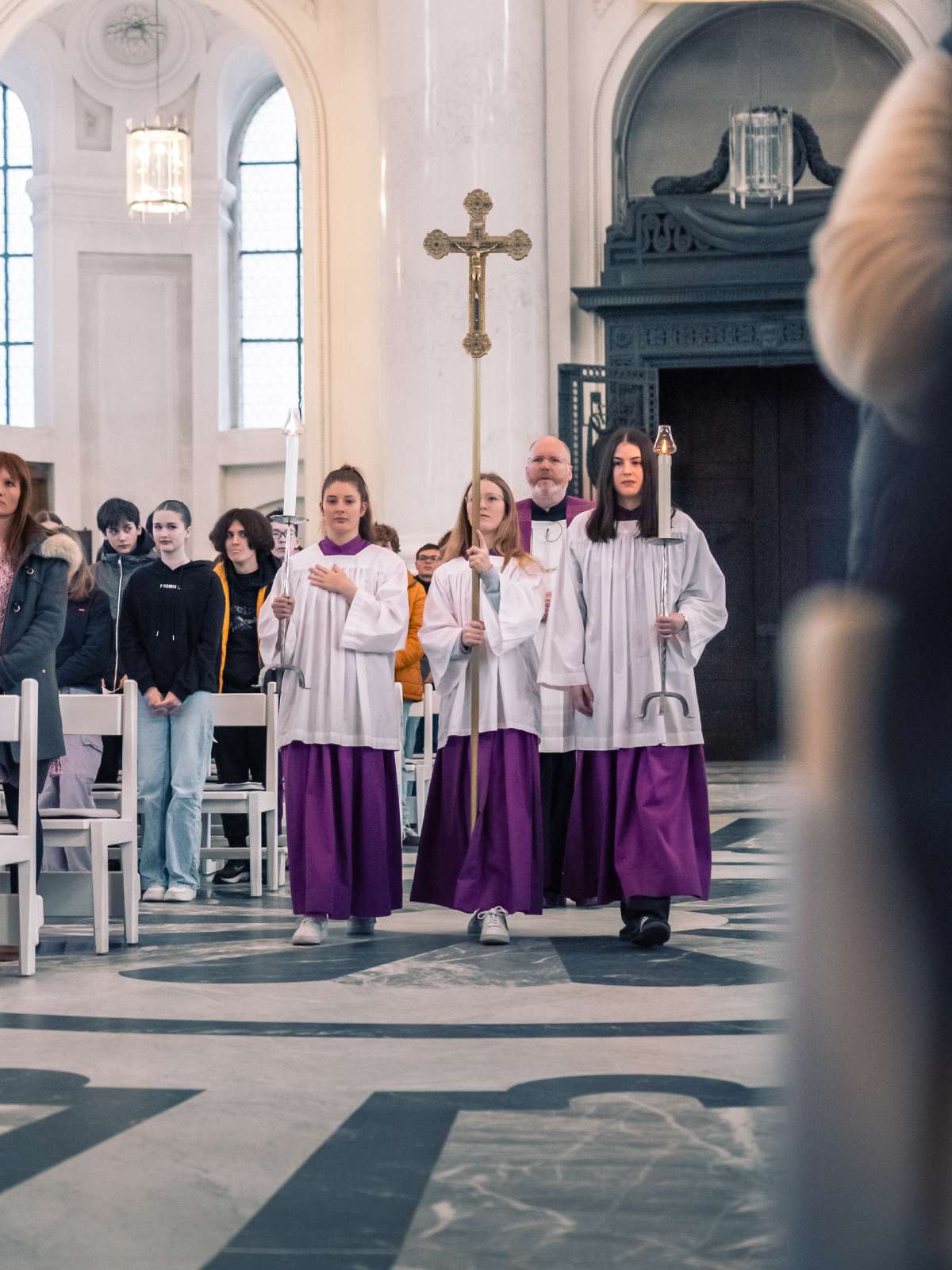 Zum Auftakt der Fastenzeit am Kolleg versammelte sich am vergangenen Mittwochvormittag in der ersten Schulwoche nach den Fastnachtsferien die ganze Kollegsgemeinschaft im Dom zum Kollegsaschermittwochsgottesdienst. Im Zentrum standen die vielfältigen Aschesituationen unserer großen und kleinen Zeit wie beispielsweise Krieg und Vertreibung aber auch persönliche Lebenskrisen, die durch Erkrankung, Trennung und Tod verursacht werden. Sie alle prägen unseren Kollegsalltag. Am Beispiel dreier alttestamentlicher Gewährsleute erlebten die Jugendlichen und ihre Lehrkräfte, wie diese mit ihrer jeweiligen Ohnmacht umgingen. Durch deren jeweilige Hinwendung zu Gott konnten sich ihre Aschepunkte zu Umkehrpunkten ihres Lebens verwandeln und so in Auferstehungserfahrungen münden. Im Anschluss hatten alle die Möglichkeit, ihre Bereitschaft zur Umkehr und erneuten Hinwendung zu Gott mit dem Empfang des Aschekreuzes zu bekennen.