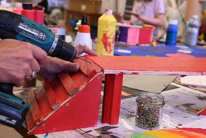 Hier wird gesägt, geraspelt, gebohrt und gehämmert, geleimt, geschraubt, geklebt und bemalt.
