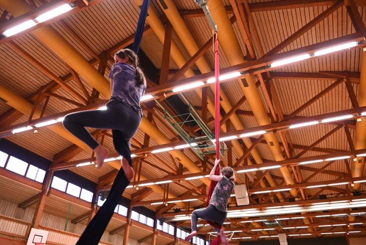 Yoga, Floorwork und uns stärkende Techniken aus dem Neuen Tanztraining aktivieren unsere Kräfte. Wir tanzen uns weich, warm und durchlässig, um optimal für das Arial Silk vorbereitet zu sein. Aus Bodensequenzen und Technikabfolgen entwickeln wir einfache Choreografien. Improvisation lässt Raum für das Spiel und die tänzerische Forschung am vertikal hängenden Feinjersey Tuch. Hieraus entwickeln wir eigens kreierte Kompositionen im Solo, mit Partner und der Gruppe. Wir verinnerlichen und lernen bekannte Basistechniken und neue Figuren der Luftakrobatik am Tuch kennen. Ästhetik und Dynamik werden in den Figurenabfolgen herausgearbeitet und zu einer persönlichen Performance entwickelt.