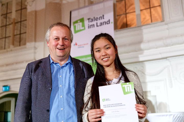 Die Kollegianerin Linh Chi Bui (Kl. 8a) wurde am 14. November 2018 in Stuttgart in das Programm „Talent im Land“ aufgenommen. Bei diesem Förderprogramm unterstützen die Baden-Württemberg Stiftung und die Robert Bosch Stiftung begabte Schülerinnen und Schüler auf ihrem Weg zum Abitur oder zur Fachhochschulreife. Linh Chi ist 13 Jahre alt und wohnt in Sankt Blasien. Sie wurde in Deutschland geboren und ihre Eltern stammen aus Vietnam. Zur ihren Interessen gehören die Theater AG, Kunst, Literatur, Kultur und die Geschichten aus der griechischen Mythologie. In ihrer Freizeit geht die talentierte junge Frau schwimmen, spielt Volleyball, musiziert auf dem Akkordeon oder schreibt eigene Gedichte und Geschichten. Mehrmals hat sie die Vorlesewettbewerbe in der Schule gewonnen. Die Klassensprecherin ist auch als Mathe-Nachhilfelehrerin für Grundschüler aktiv.