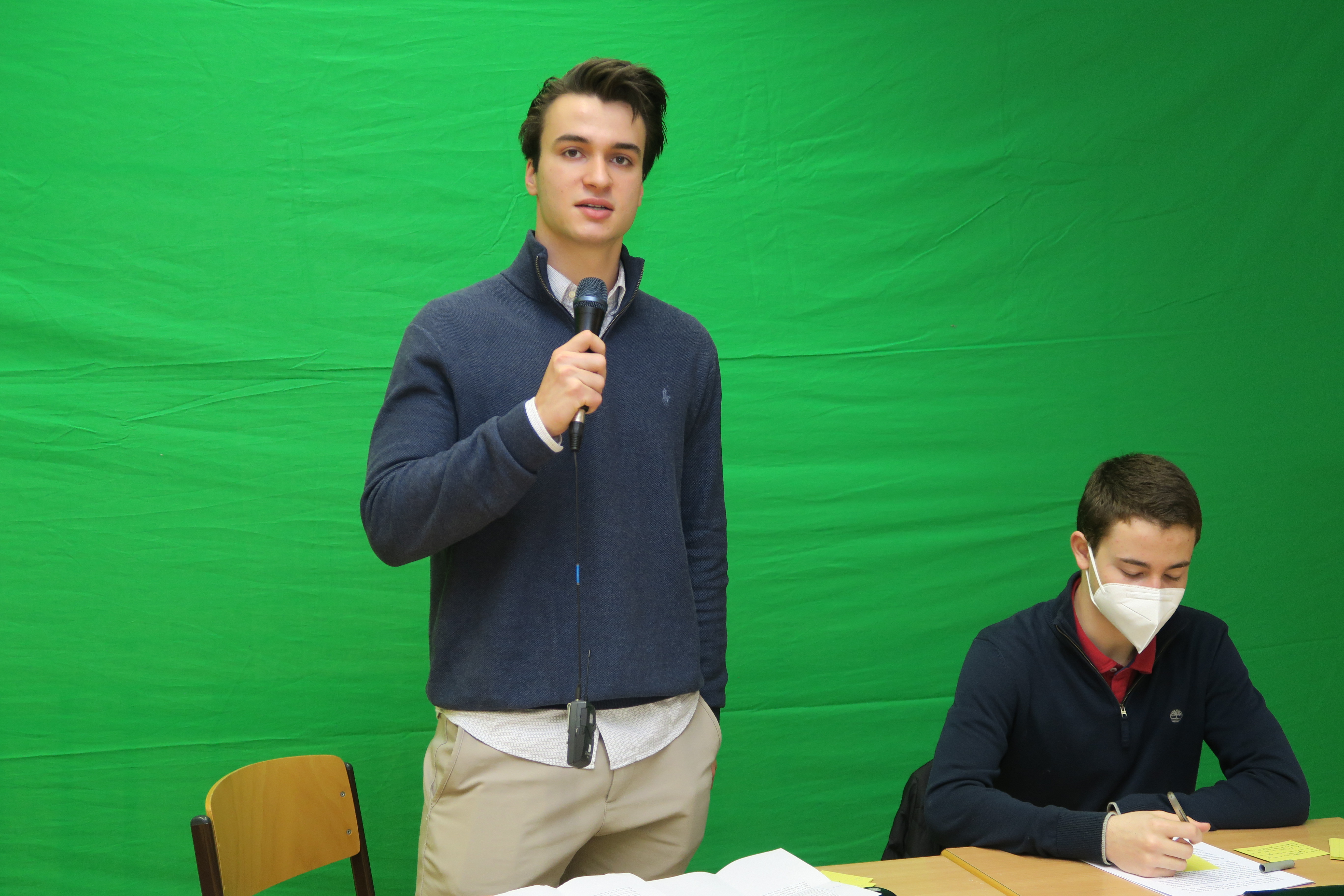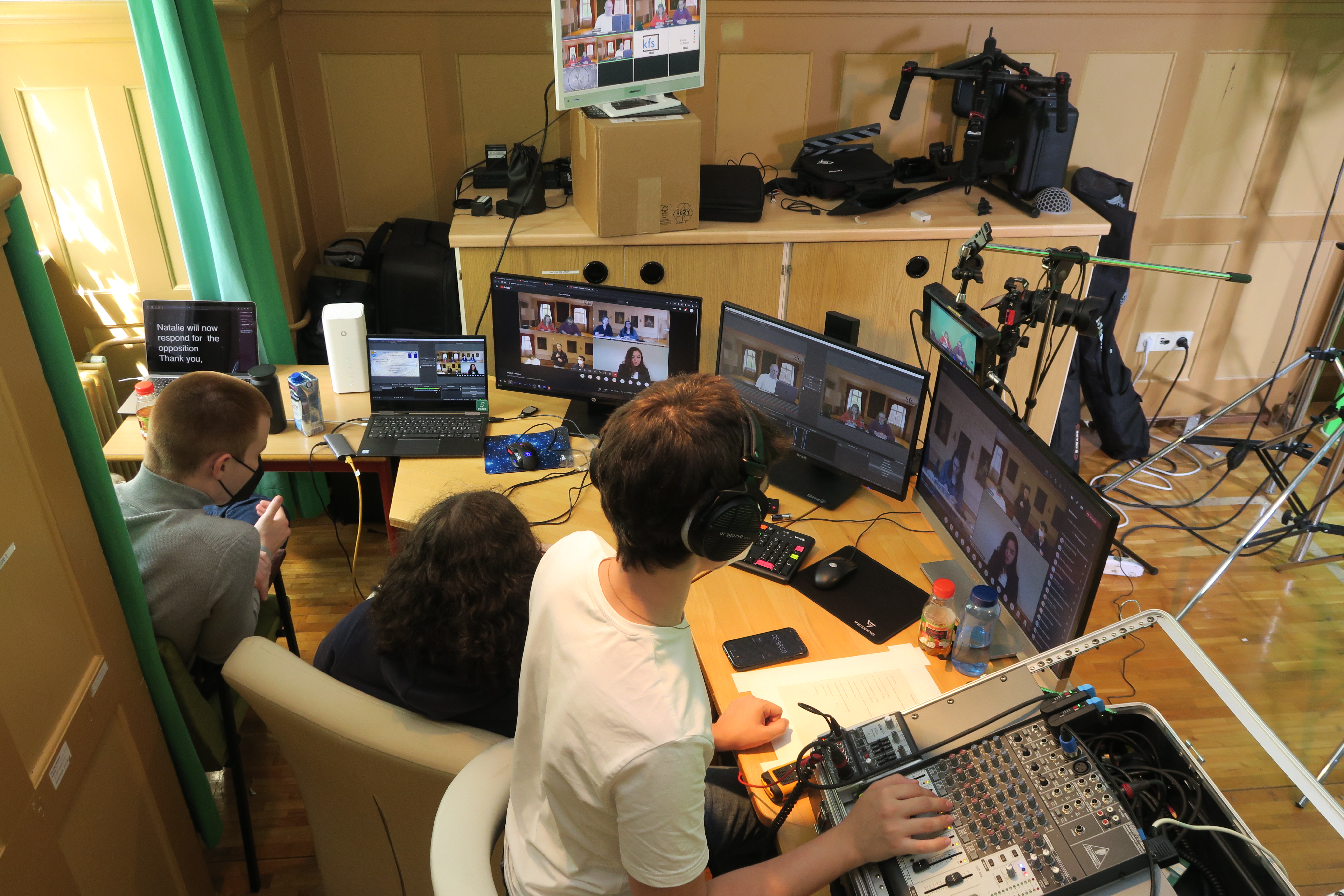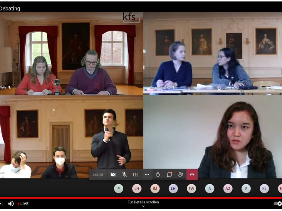 Am Pfingstsamstagvormittag gab es eine Premiere am Kolleg: Erstmalig wurde der English Debating Club per YouTube-Livestream gestartet und nach einem holprigen Beginn mit Tonproblemen hat alles prima geklappt. Zwei Schülermannschaften (proposition/opposition) debattierten unter der Leitung von Herrn O'Reilly in separaten Kollegsräumen über das aktuelle Thema: "This House would ban the use and trade of cryptocurrencies". Es war ein erheblicher Aufwand an Technik und Vorbereitungszeit, aber es hat sich sehr gelohnt. Ein ganz herzlicher Dank geht an das Kollegsfernsehen (KFS) mit Patrick Priese, Louis Hutters und Aaron Bergmann, die mit ihrem Know-How dafür sorgten, dass dieses Ereignis hervorragend realisiert werden konnte. Die Aufzeichnung dieser Pfingstdebatte ist auf unserem YouTube-Kanal abrufbar.