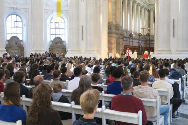 Am Dienstagmorgen, den 16. September 2025, begann für 847 Kollegianerinnen und Kollegianer das neue Schuljahr am Kolleg St. Blasien. Um 7:35 Uhr versammelte sich die Kollegsgemeinschaft – Schülerinnen und Schüler, Lehrkräfte sowie Eltern – zum Eröffnungsgottesdienst im Dom. Mit seiner Predigt stellte Kollegsdirektor Pater Rieder SJ das ignatianische Leitwort „Gott suchen und finden in allen Dingen“ in den Mittelpunkt, das Orientierung für das neue Schuljahr und das neue Naturwissenschaftliche Zentrum gibt.