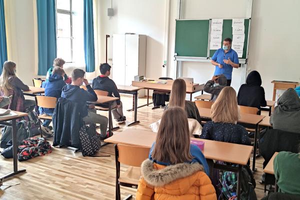 37 Schülerinnen und Schüler der zehnten Klassen besuchten im Rahmen eines Tagesaustausches die französische Partnerschule in Thann/Elsass. Bei gemeinsamen Sprachspielen wurde die Sprechkompetenz in der Fremdsprache geschult. Die deutschen Schüler nahmen das Mittagessen zusammen mit ihren Austauschpartnern in der Kantine des Lycée Scheurer-Kestner ein.