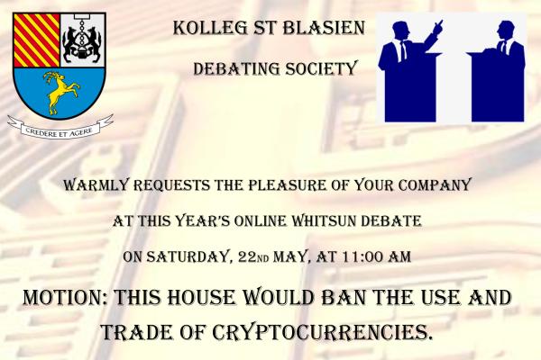 Der English Debating Club am Kolleg lädt am Pfingstsamstag (22. Mai) zur traditionellen Pfingstdebatte ein. Kollegianerinnen und Kollegianer debattieren zum Thema: "This House would ban the use and trade of cryptocurrencies". Erstmalig wird die Debatte am Pfingstsamstag um 11:00 Uhr per Live-Stream auf unserem YouTube-Kanal übertragen. Darüber hinaus können sich Gäste aus der Kollegsgemeinschaft bis zum 20. Mai anmelden, um nach den Hauptreden aus dem Publikum Fragen zu stellen oder ihre Meinung zu äußern. Ausführliche Informationen zur Anmeldung gibt es in der Einladung mit Datenschutzerklärung (Download).