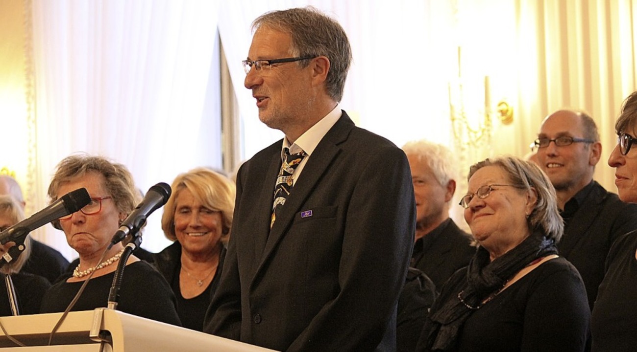 Mit einem Festakt wurde Michael Neymeyer am vergangenen Sonntag im Festsaal des Kollegs geehrt. Höhepunkt war die Verleihung des Titels Musikdirektor ACV auf Grund seiner herausragenden Verdienste um die Musik in der katholischen Pfarrgemeinde und im Kolleg während 25 Jahren. Überreicht wurde ihm die Ehrung durch Dominik Axtmann, den ersten Vizepräsidenten des Allgemeinen Cäcilienverbandes (ACV)für Deutschland. Axtmann hob beim Überreichen der Urkunde und des Abzeichens hervor, der Titel eines Musikdirektors ACV werde nur sehr selten verliehen und sei ein echter Leistungstitel, der bundesweit nur einmal pro Jahr vergeben werde – in manchen Jahren auch gar nicht.