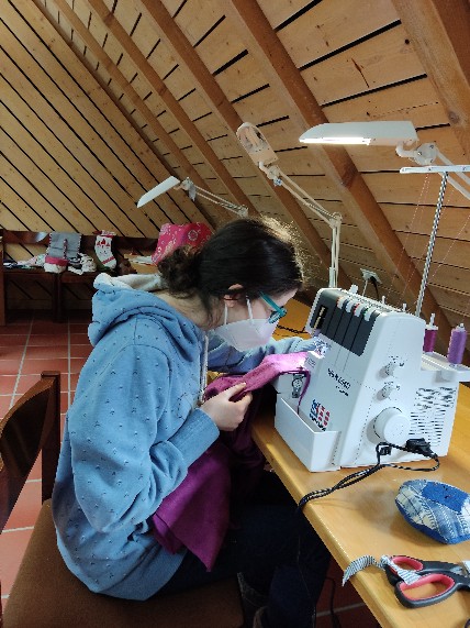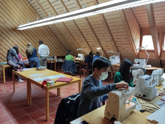 Alle zwei bis drei Wochen treffen sich Kollegianerinnen und Kollegianer für einen ganzen Nachmittag mit Frau Zumkeller, um gemeinsam zu nähen. Egal ob noch Anfänger oder schon erfahren an der Nähmaschine, der Nähkurs bietet jedem ein passendes und auch herausforderndes Projekt. Durch die zahlreichen Möglichkeiten und Tipps von Mitschülern und Frau Zumkeller kann so jeder kreativ experimentieren. In den Wochen vor den Osterferien wurden fleißig Taschen, Schlüsselanhänger und Etuis in verschiedensten bunten Farben selbst genäht. Durch eine großzügige Spende des Kolleg-Fördervereins konnten so kürzlich neue Overlock-Maschinen angeschafft werden, wodurch nun richtige Kleidungsstücke wie Shirts, Pullover und Kleider genäht werden. Darüber hinaus bietet der Kurs Zeit sich mit den anderen Teilnehmern auszutauschen und sich gegenseitig zu helfen. Nach einigen Stunden im Nähkurs kommt man mit einem Selfmade-Stück, guten Gesprächen und einem umfangreichen Wissen über die Nähmaschine, verschiedenen Stoffen und Techniken zurück.
