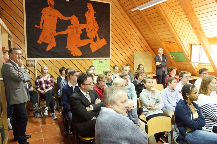 Vor den Herbstferien wurde der neue Raum für Alte Sprachen des Kollegs eingeweiht. Anlass für die Neugestaltung des ehemaligen Raumes im Dachstock war die Erbschaft der Bibliothek von Professor Doll, ehem. Hochschullehrer von Schulleiter Dr. Müller, die in diesen Raum integriert wurde und ihm einen Flair von Harry Potters Hogwarts gegeben hat. Sein neuer Name „Museion“ verweist auf die berühmte Bibliothek von Alexandria, die Teil eben dieses bedeutendsten Wissenschaftszentrums der Antike war. Die Einweihung wurde mit einem kleinen Festakt begangen, in dem beiden Paten der Bibliothek Herr Kersten (Weltkulturerbe Völklinger Hütte) und Dr. Schröter (Universitätsbibliothek Freiburg), die maßgeblich mit ihrem Engagement dafür verantwortlich sind, dass dieser Bücherschatz seinen Standort im Kolleg gefunden hat, gedankt wurde. Griechischschüler des Kollegs führten durch eine kurze Geschichte des antiken Museions, und anschließend gab es noch einige griechische Köstlichkeiten.