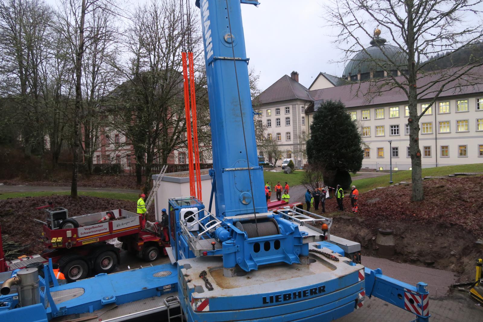 Am Dienstagmorgen, dem 28. Januar, wurde die neue 28 Tonnen schwere Trafostation sowie der dazugehörige große Transformator erfolgreich am Kolleg angeliefert. Dieses Herzstück markiert einen zentralen Meilenstein im Rahmen des neuen Energiekonzepts am Kolleg. In den kommenden Wochen stehen weitere entscheidende Arbeiten auf dem Kollegsgelände an: Unter anderem werden die vier alten Öltanks mit einem Fassungsvermögen von jeweils 100.000 Litern ausgegraben und fachgerecht entsorgt. Nachdem seit Beginn dieses Jahres der Stromverbrauch des Kollegs vollständig auf Strom aus 100 % Wasserkraft umgestellt wurde, liegt der Fokus nun auf der nachhaltigen Umstellung der Wärmeerzeugung. Hierfür sind umfangreiche technische Erneuerungen notwendig.