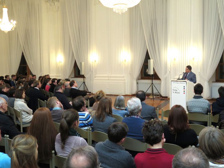 Über „Die gesellschaftliche Bedeutung des NSU-Verfahrens“ sprach der Jurist und Autor Dr. Mehmet Daimagüler am vergangenen Freitagabend (22. Januar) im gut besuchten Festsaal des Kollegs. Der Anwalt zweier Hinterbliebenenfamilien berichtete in seinem Vortrag über den bisherigen NSU-Prozess und diese Morde im Kontext von Rassismus. Im Anschluss an seinen spannenden Vortrag gab es eine ausführliche Diskussion mit unseren Oberstufenschülern und einen lang anhaltenden Applaus.