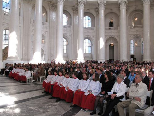 Der Pfingstfesttag startete um 9.30 Uhr mit einem sehr schönen Hochamt im Dom als zentraler Höhepunkt. Kollegs- und Domchor sangen die großartige Choralmesse in C-Dur von Anton Bruckner. Die Kollegsversammlung begann anschließend in der Pater-Alfred-Delp-Halle. Pater Professor Klaus Schatz SJ hielt einen ausgezeichneten Vortrag zum 400. Todestag des großen Chinamissionars Pater Matteo Ricci SJ.