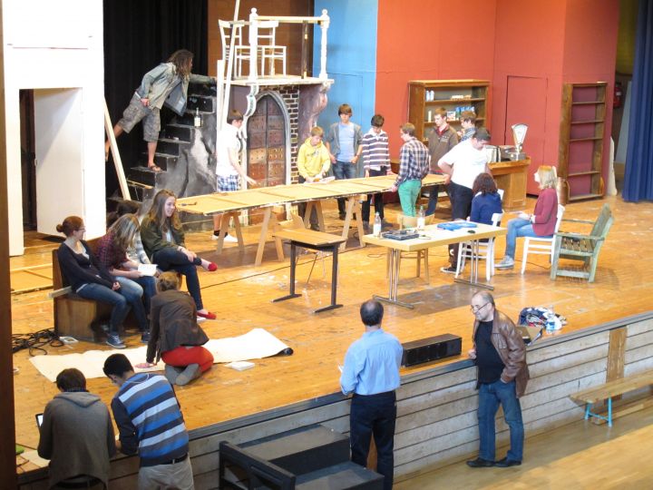 Die 1956 im Schauspielhaus Zürich uraufgeführte tragische Komödie „Der Besuch der alten Dame“ von Friedrich Dürrenmatt wird in diesem Jahr auf die Bühne gebracht. Rund drei Dutzend Kollegianer spielen in dem requisitenlastigen Stück und werden dabei dramaturgisch von der dreizehnköpfigen Bühnenmannschaft unterstützt. Die Bühnenmannschaft hat dieses Jahr großartiges geleistet, da sie den riesigen Theaterfundus unter der Bühne neu strukturierte, obwohl sie allein schon durch den Bühnenbau ausgelastet gewesen wäre. Die alte Dame Claire Zachanassian – gespielt von Sarah Maier (KS 11) - besucht ihre alte Heimatstadt Güllen, um sich dort an ihrem ehemaligen Geliebten Alfred Ill – gespielt von Paul Erling (KS 11) - zu rächen, der sie schwanger sitzen ließ. Für die Ermordung Ills bietet sie Güllen eine Milliarde…