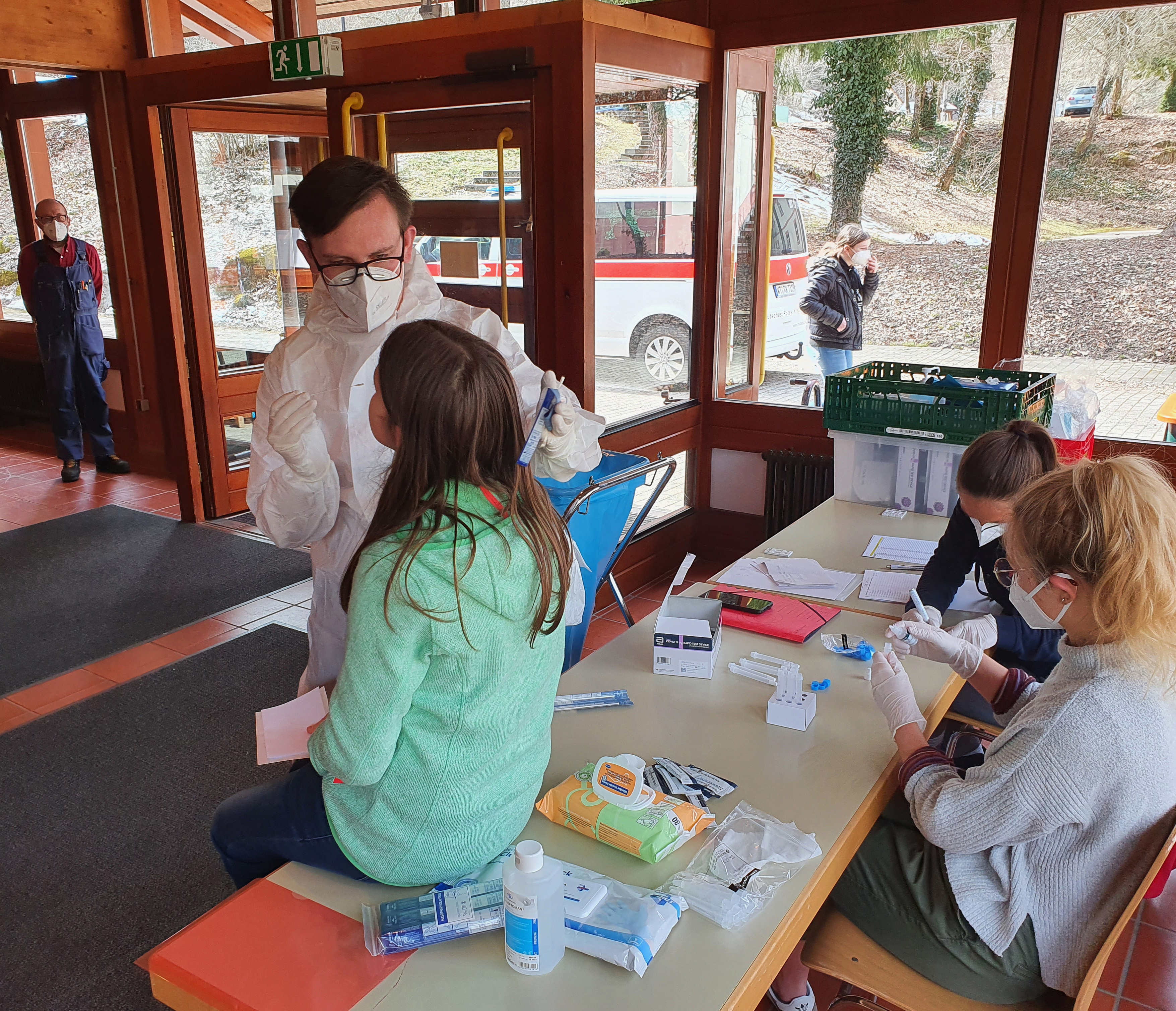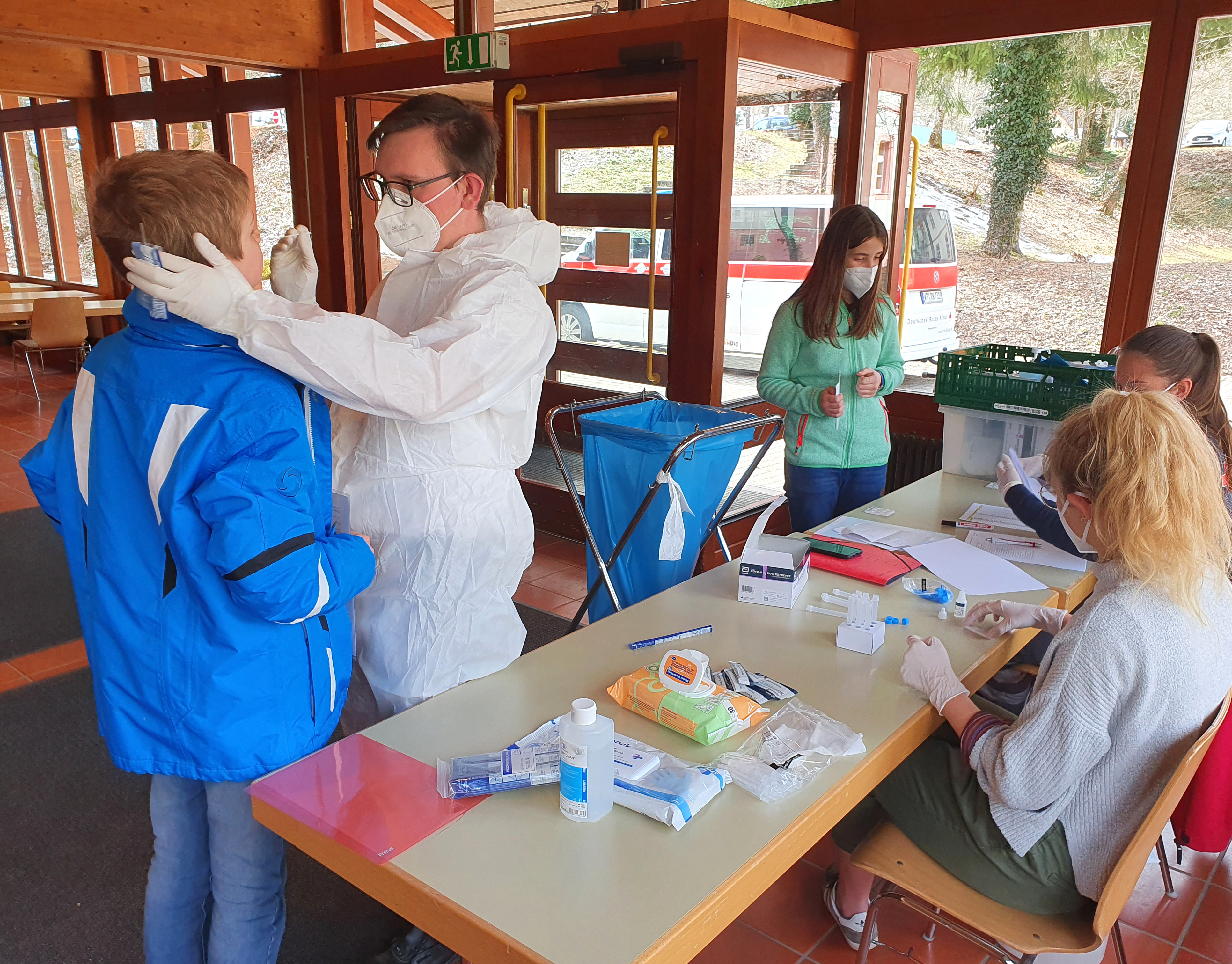 Heute Nachmittag führte das mobile Test-Team des DRK St. Blasien wieder eine Testung am Kolleg durch. Es gab abermals die Möglichkeit, dass sich die Schülerinnen und Schüler, die gegenwärtig im Präsenzunterricht sind, auf das Corona-Virus testen lassen. Alle Schnelltests zeigten erfreulicherweise negative Ergebnisse!