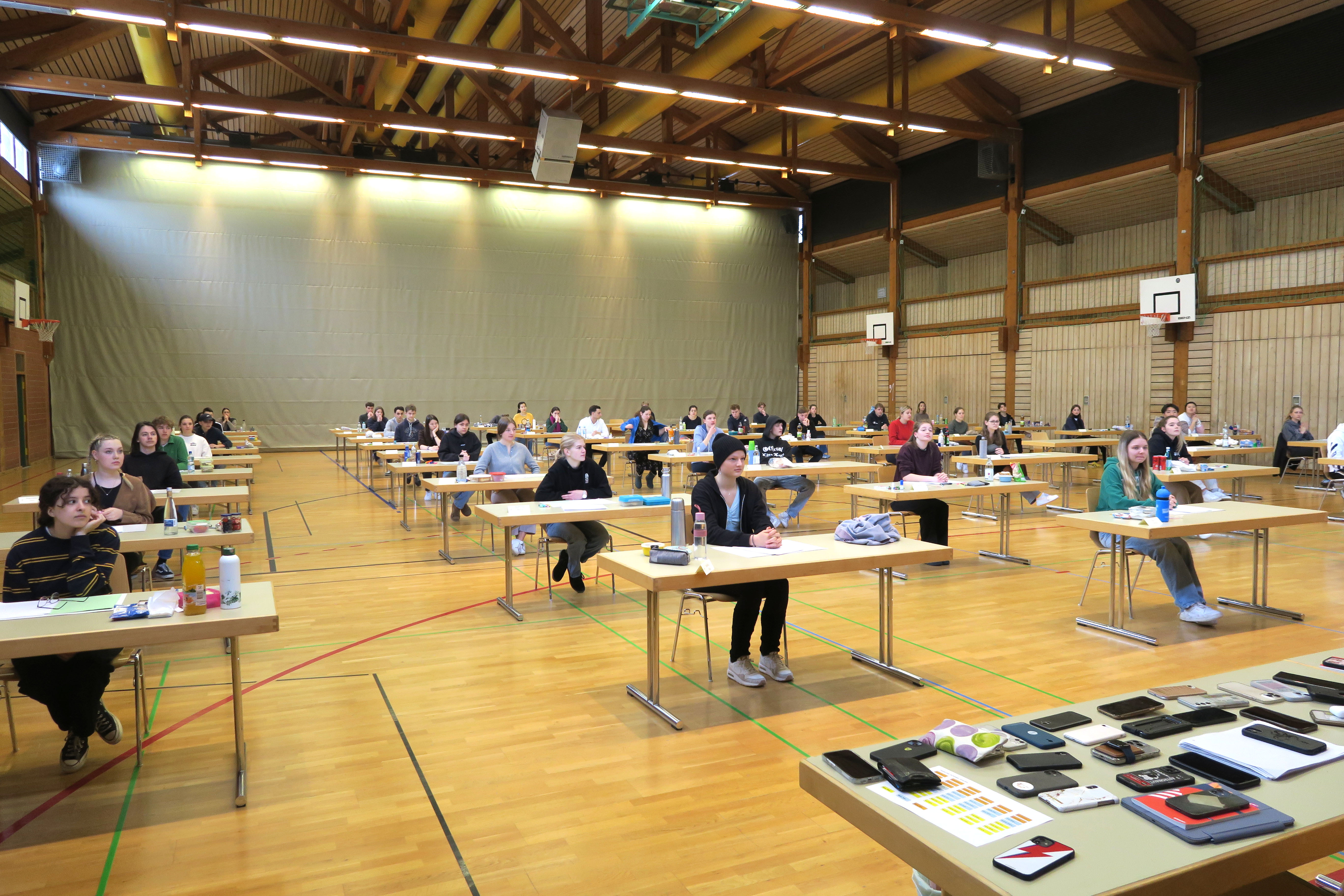 Nach Wochen und Monaten des intensiven Lernens ist es nun so weit: Am heutigen Donnerstag (18. April) beginnen am Kolleg die schriftlichen Abiturprüfungen. Los ging es in der Pater-Alfred-Delp-Halle um 9 Uhr mit Biologie. 136 Kollegianerinnen und Kollegianer aus Brasilien, China, Costa Rica, Deutschland, Frankreich, Katar, Österreich, Polen, Portugal, Schweiz, Slowakei, Spanien und der Ukraine nehmen an den diesjährigen Abiturprüfungen teil. 85 der Prüflinge kommen aus der Region und 51 leben im Internat. Für die jungen Menschen ist es das letzte Kapitel ihrer Schulzeit. Alle 64 Abiturientinnen und 72 Abiturienten legen in ihren drei gewählten Leistungsfächern jeweils eine schriftliche Prüfung ab. Die letzte schriftliche Abiturprüfung steht am 7. Mai mit Mathematik an.