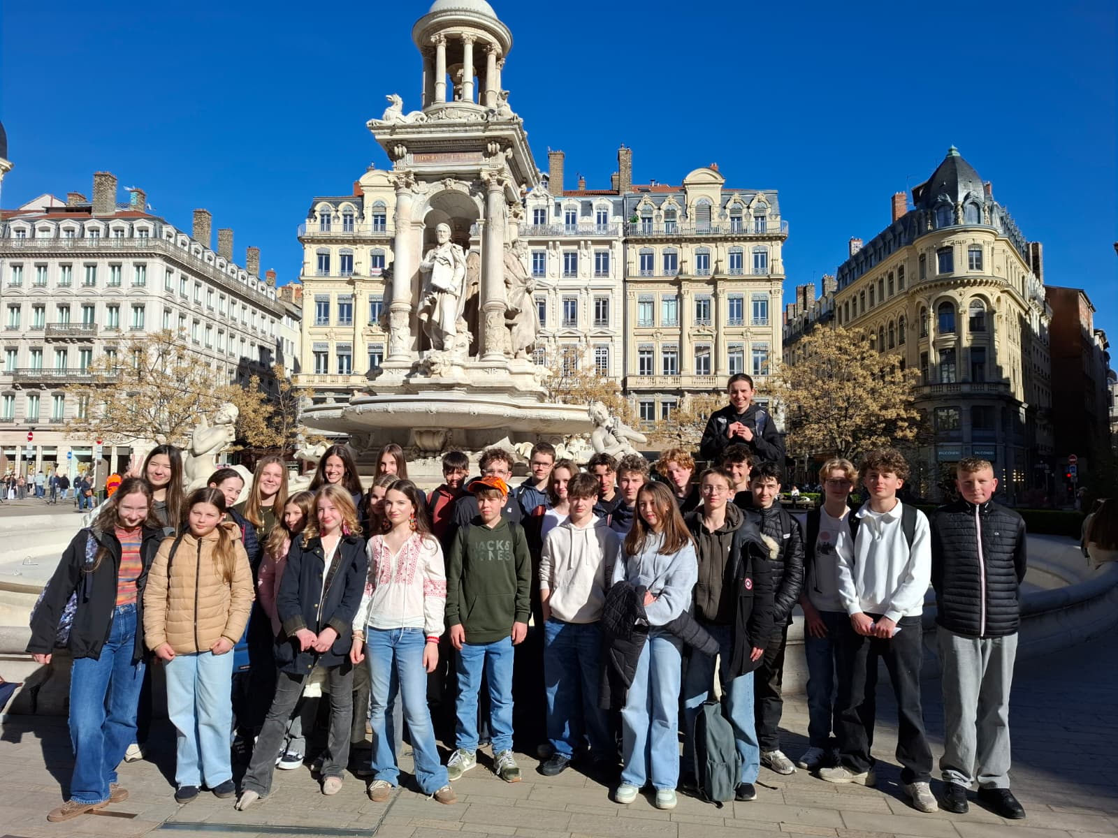 16 Schülerinnen und Schüler der achten Klassen verbringen gegenwärtig eine Woche in Lyon für den Schüleraustausch mit der Jesuitenschule Collège Saint-Marc. Gemeinsam mit ihren französischen Gastgebern müssen sie unter anderem eine zweisprachige Stadterkundung absolvieren und erleben das französische Schulsystem samt Mensa hautnah.