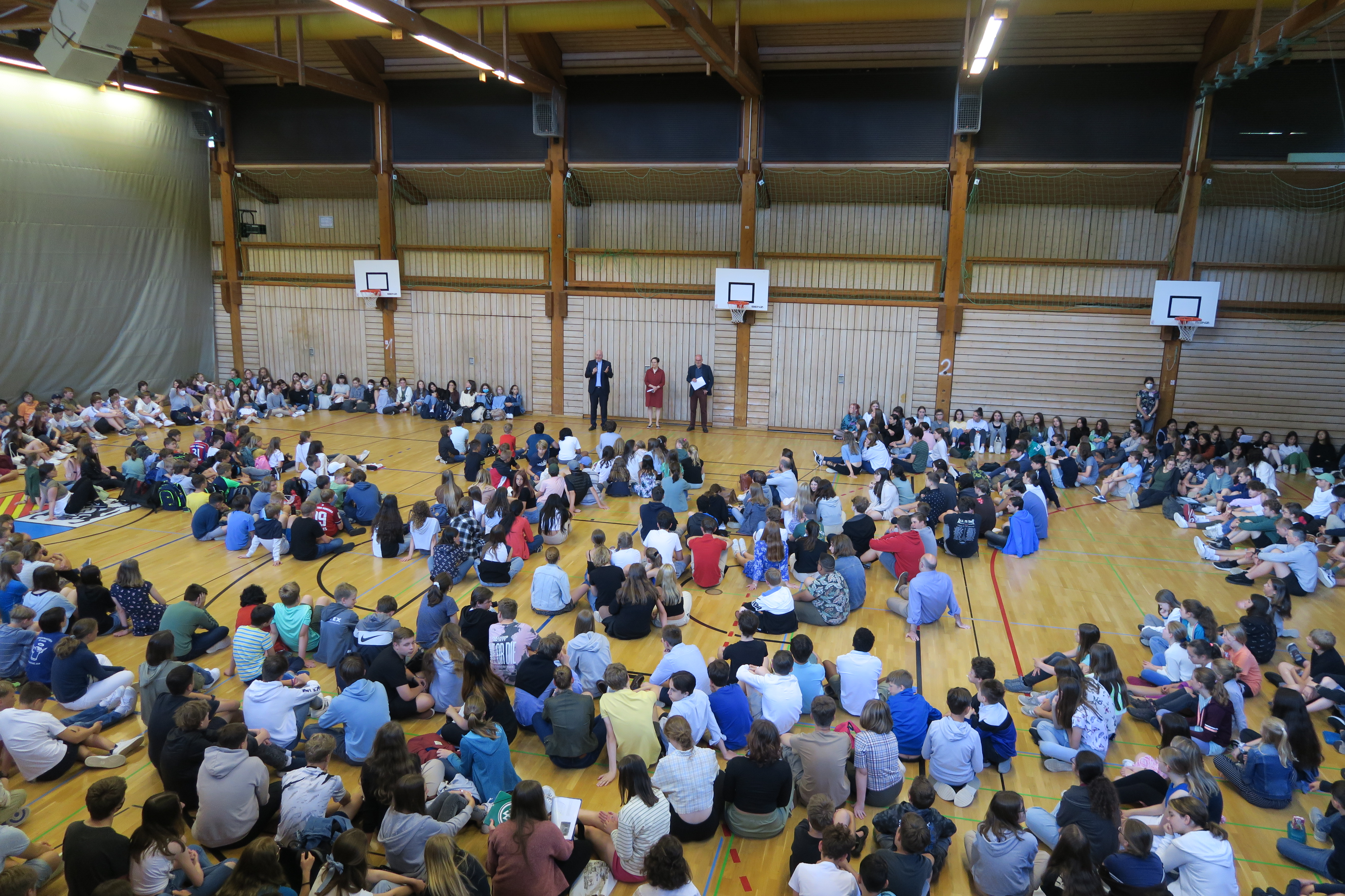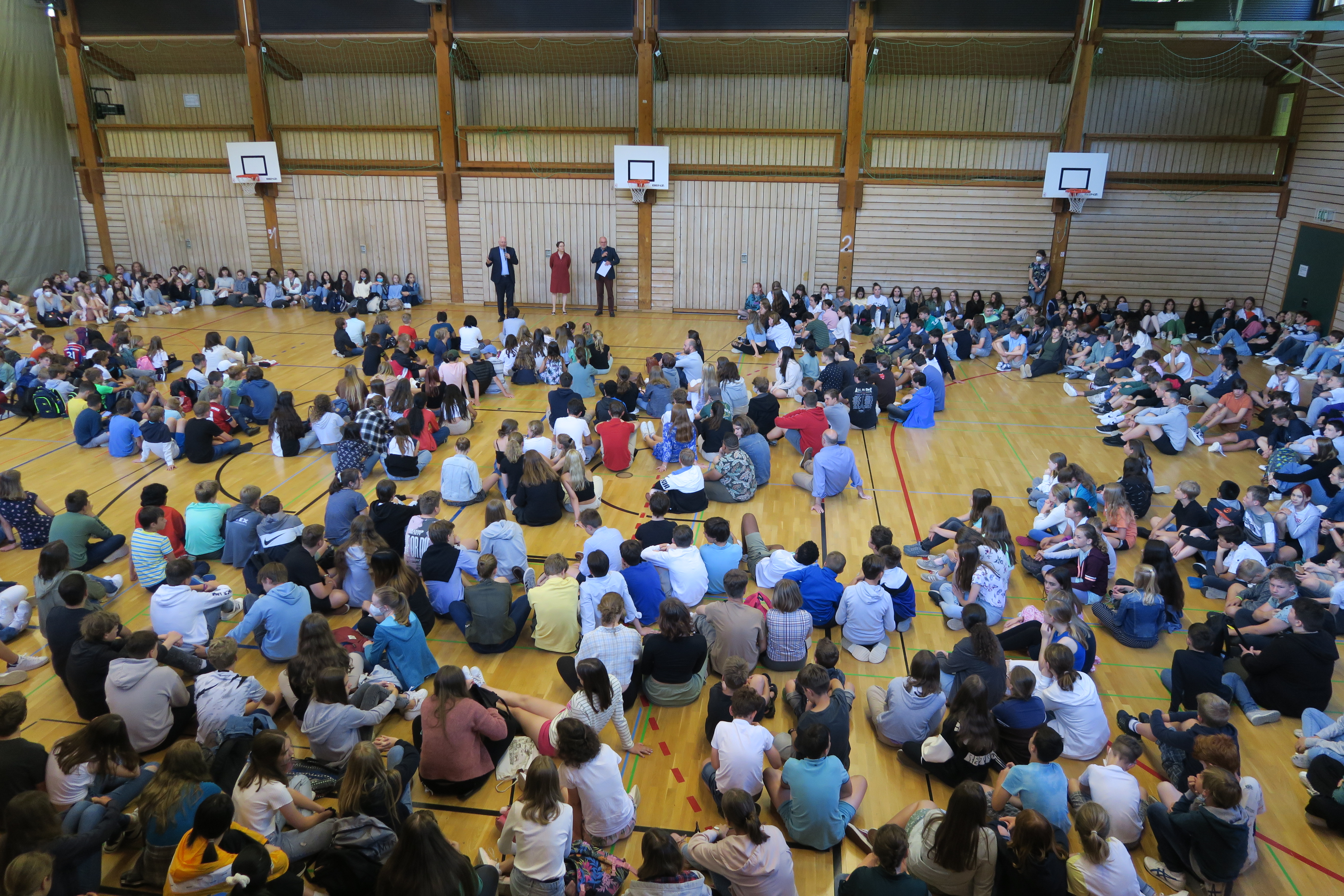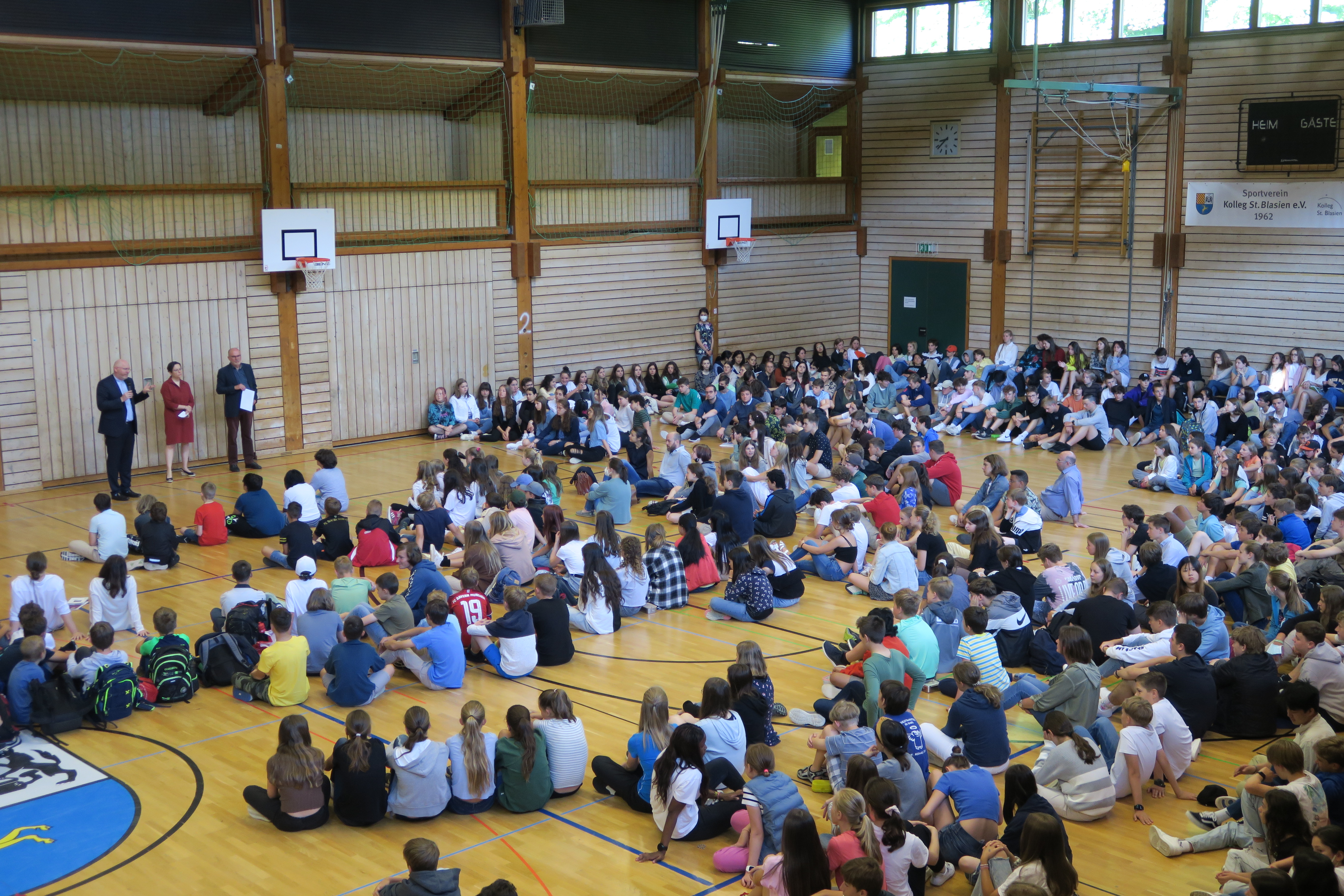Zur Schülervollversammlung machten sich alle Kollegianerinnen und Kollegianer am Freitagvormittag um 8:30 Uhr auf den Weg in die Pater-Alfred-Delp-Halle. Kollegsdirektor P. Rieder SJ begrüßte und blickte mit Dank auf das großartige Pfingstfest 2022 zurück. Danach wurden die 34 neuen Schülerinnen und Schüler aus der Ukraine in der Kollegsgemeinschaft willkommen geheißen und vorgestellt. Anschließend ehrte die Schulleitung unsere erfolgreichen Mathematiker beim Bundeswettbewerb Mathematik. Zudem berichteten die SMV-Vertreter über ihre Aktivitäten und die neuen SMV-Wahlen am Kolleg.