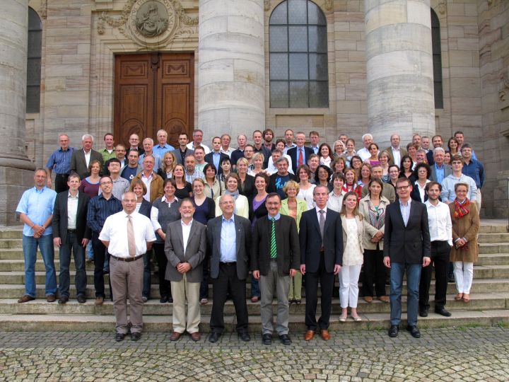 Am ersten Schultag traf sich auch das komplette Lehrerkollegium zur Eröffnungskonferenz am Kolleg. Traditionell entsteht zu Beginn dieser Konferenz auch ein Foto des Kollegiums, für das sich alle vor dem Dom versammelt haben.