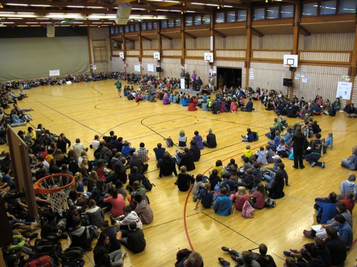 780 Kollegianer machten sich zu Beginn der 1. Stunde am Dienstagvormittag auf den Weg zur Schulversammlung. In der Delp-Halle begrüßte sie der Kollegsdirektor P. Mertes SJ und der Schulleiter Dr. Müller nach einem Lied und Gebet. Anschließend wurden die neuen Lehrer willkommen geheißen und die neuen SMV-Vertreter und Vertrauenslehrer stellten sich der Schulgemeinschaft vor. Danach präsentierten sich eine immense Vielzahl von außerunterrichtlichen Aktivitäten und Arbeitsgemeinschaften am Kolleg, die von Schülern, Lehrern und Erziehern angeboten und geleitet werden. An jeder der 30 Stationen konnten sich interessierte Schülerinnen und Schüler bei einem Ansprechpartner über das umfangreiche Angebot im aktuellen Schuljahr informieren.