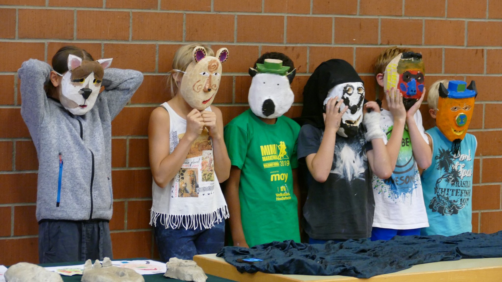 Rund 35 Kinder im Alter von sechs bis zwölf Jahren nahmen in diesem Jahr an der Sommer-Kunst-Woche unserer Kunstwerkstatt am Kolleg teil. Kürzlich stellten sie vor einem großen Publikum die Ergebnisse ihres Schaffens vor. Akrobatik verbunden mit modernem Tanz, Handtaschen, geschnitzte Masken, Gemaltes und ein Theaterstück waren zu sehen. Einen ausführlichen Pressebericht über diese Woche voller Kunst und Kreativität gibt es in der Badischen Zeitung.