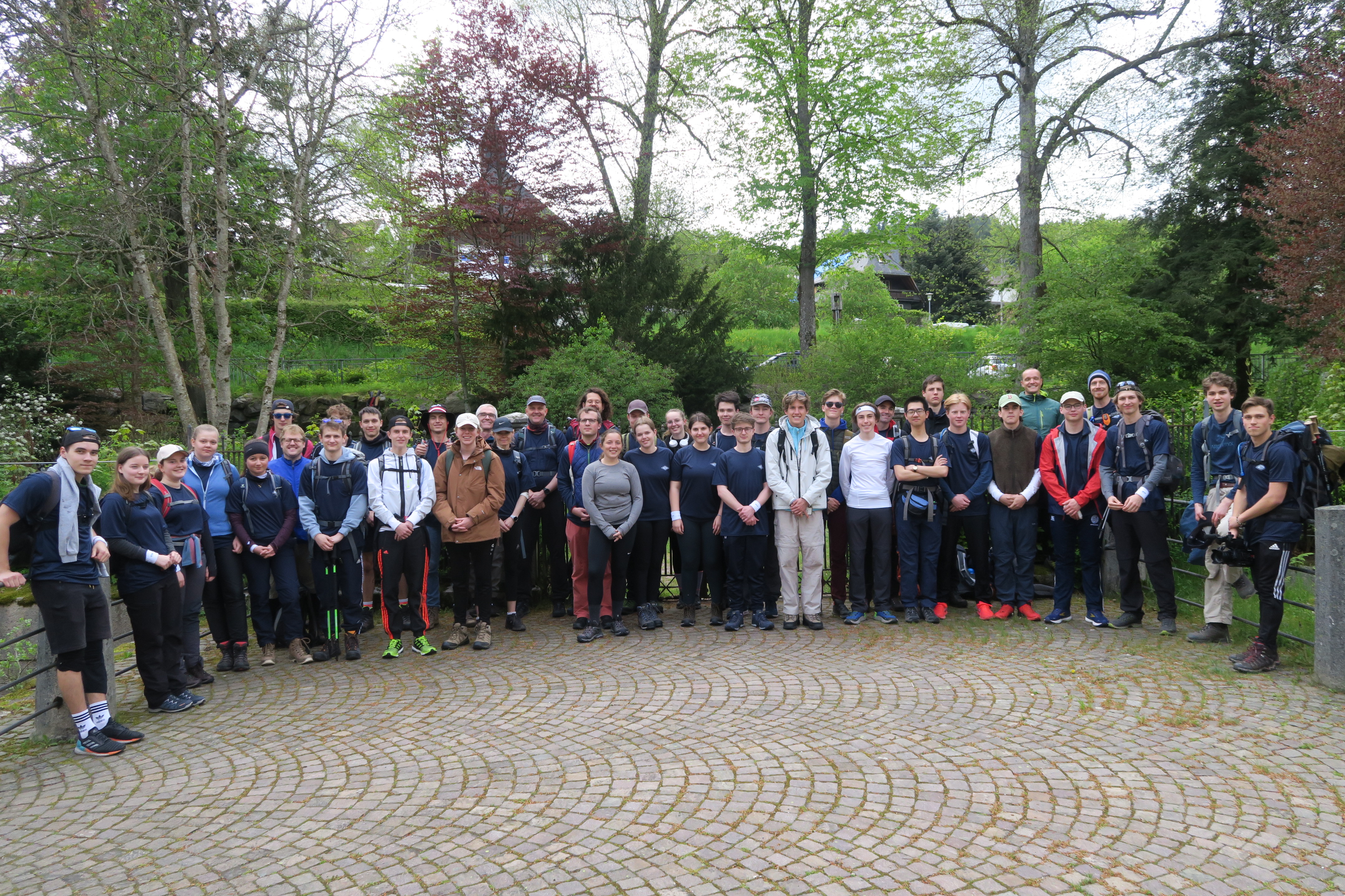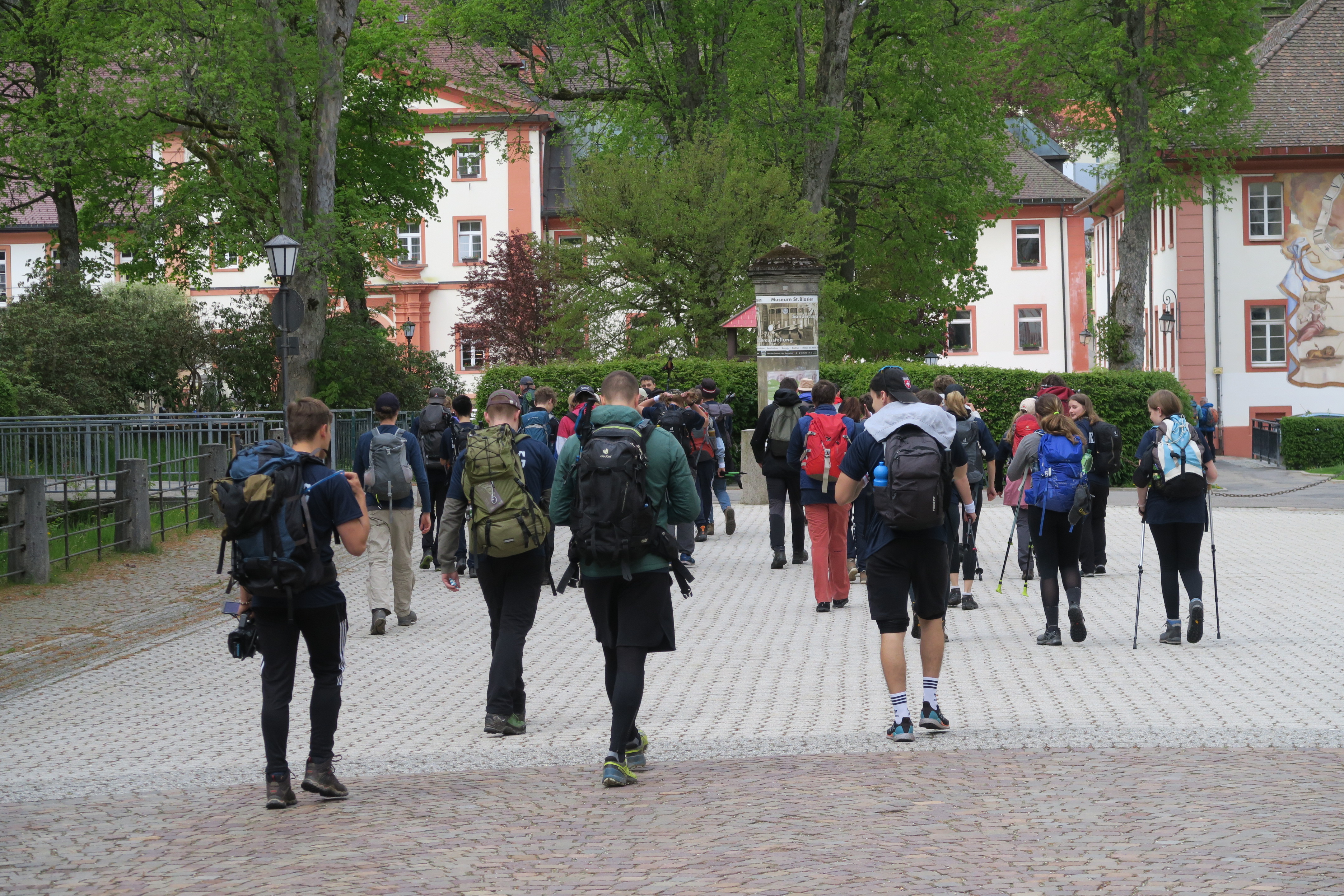 Start des 24h-Megamarsches war am heutigen Mittwochnachmittag (17. Mai) um 16 Uhr nach dem Pilgersegen am Kolleg in St. Blasien. 30 Jugendliche und 8 Erwachsene stellen sich in den kommenden 24 Stunden dieser Herausforderung. Bis die Gruppe in Albbruck am Donnerstagnachmittag ankommt, wird sie durch Bernau auf das Herzogenhorn gestiegen sein, in der Dunkelheit über den Feldbergpass und dann über Menzenschwand zurück nach St. Blasien, wo sie nach einer Stärkung stets auf und ab beiderseits der Alb über Häusern, den Dachsberg, Immeneich bis ganz hinab kurz vor die Schweizer Grenze wandern werden.