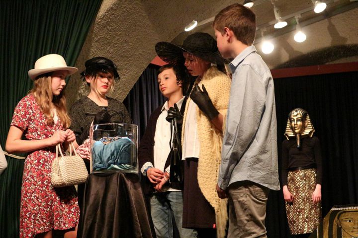 Am 7. April führte die Theaterklasse 5/6 unter der Leitung von Frau Meier und Frau Snyder ihr Stück "Das Amulett der Mumie" auf. Die Schülerinnen und Schüler waren begeistert bei der Sache und ernteten viel Applaus auf der voll besetzten Studiobühne. Im Hintergrund wirkten die fleißigen Helfer Aaron (8a), Lennart (9d), Leonie (10e), Naomi/Vivian (KS11), Antonia/Victoria und Lara (KS 12). Herzlichen Dank und ein großes Lob an die Nachwuchsschauspieler!