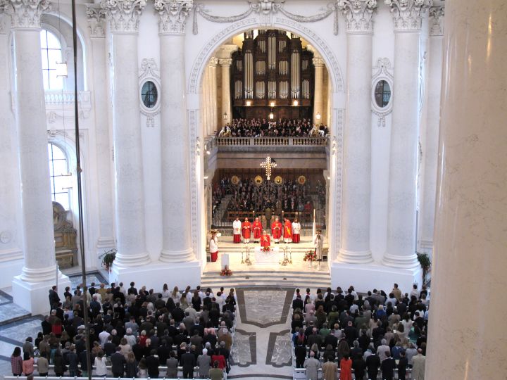 Der Pfingstsonntag begann um 9:30 Uhr mit einem sehr schönen Hochamt als zentralen Höhepunkt des Pfingstfestes. Kollegsdirektor Pater Mertes SJ hielt die Festpredigt im sehr gut besuchten St. Blasier Dom und stimmte in den Pfingsthymnus "Veni creator spiritus" als gemeinsames Lied ein. Das Kollegsorchester und der Kollegschor sorgten für eine gelungene musikalische Begleitung des Festgottesdienstes mit einer Messe von Johann Ernst Eberlin sowie einem Rondeau von Jean-Joseph Mouret zum Einzug und den „Heures mystiques“ von Léon Boëllmann zum Auszug. Impressionen vom Hochamt gibt es in unserer Bildergalerie.