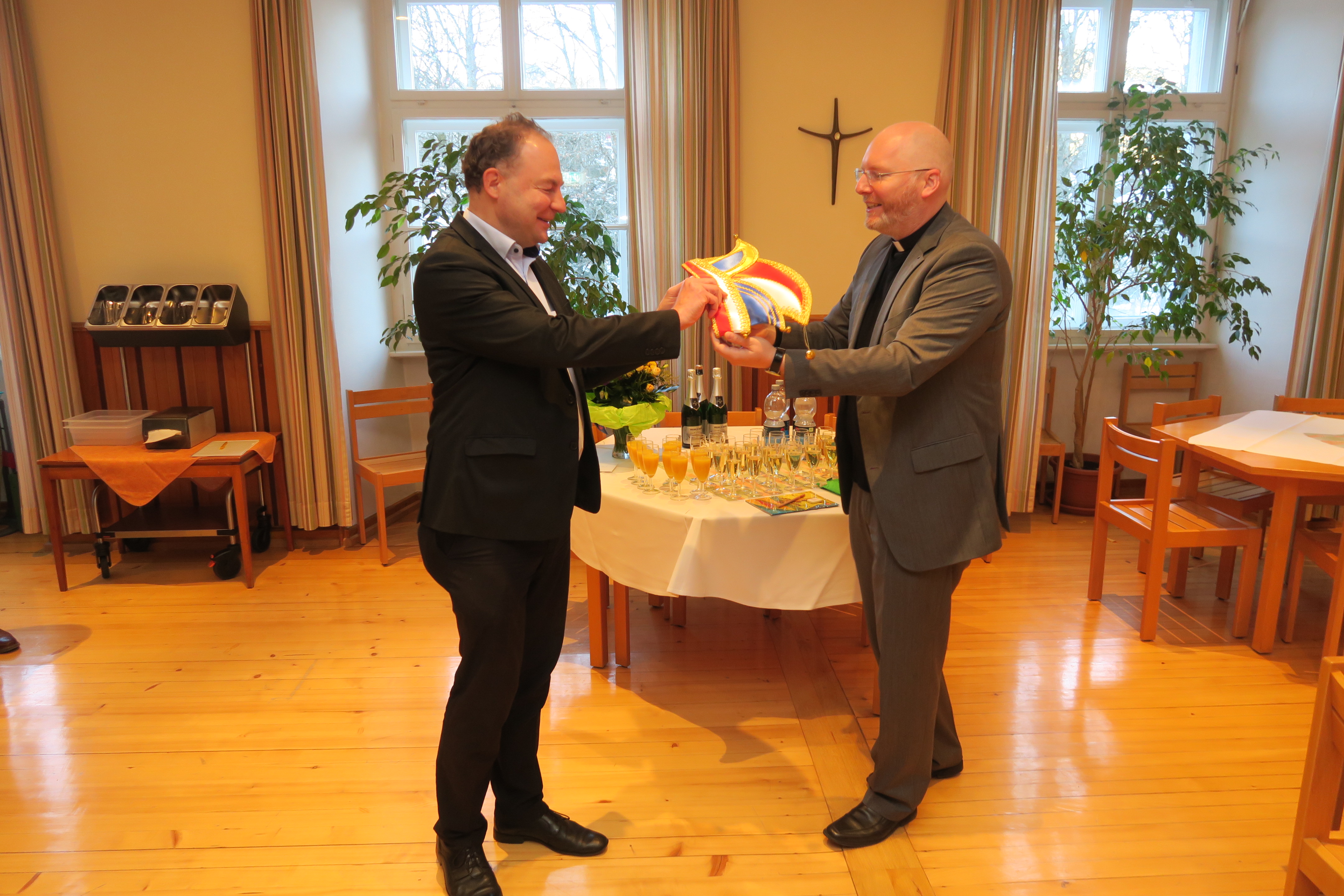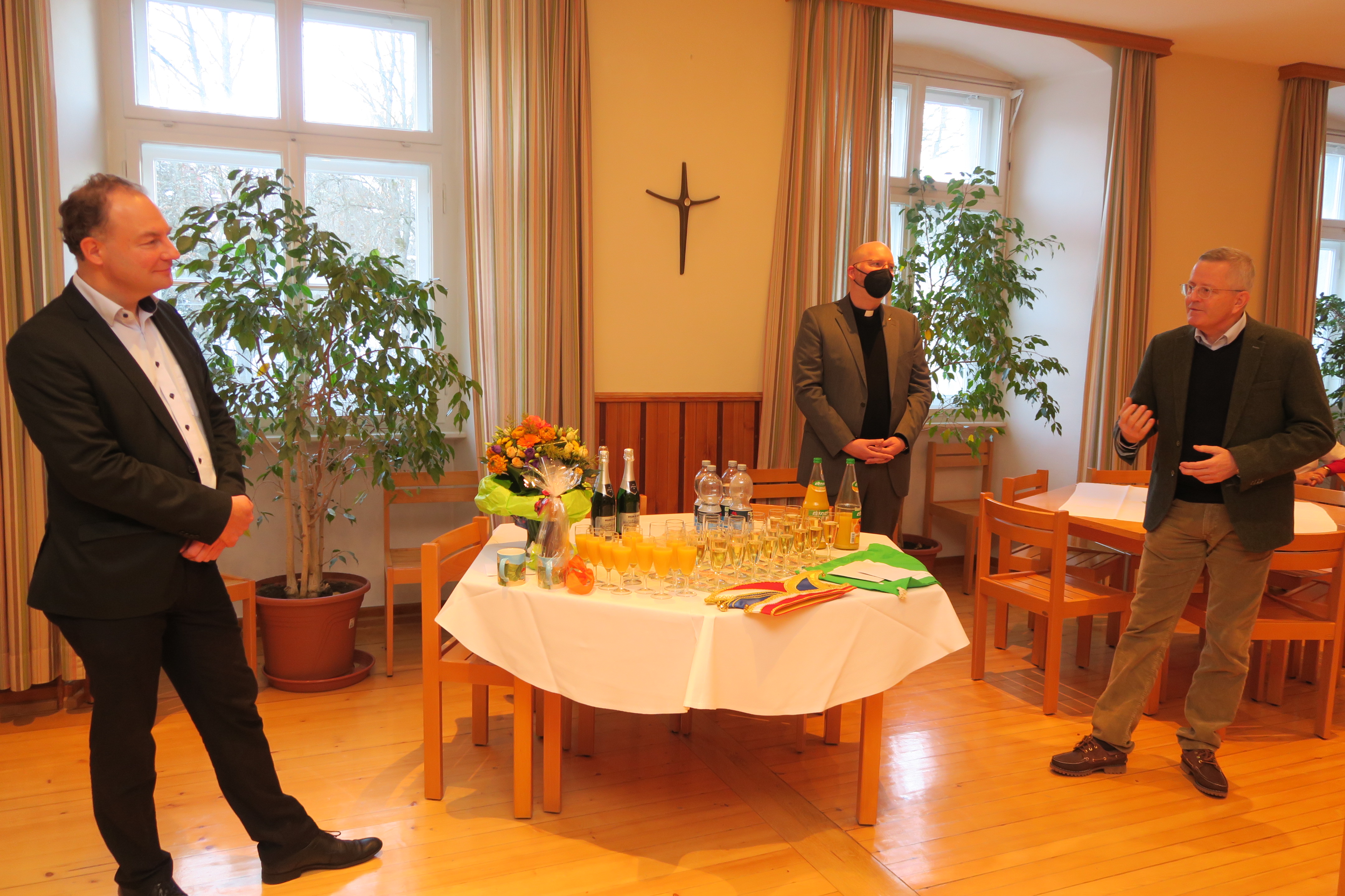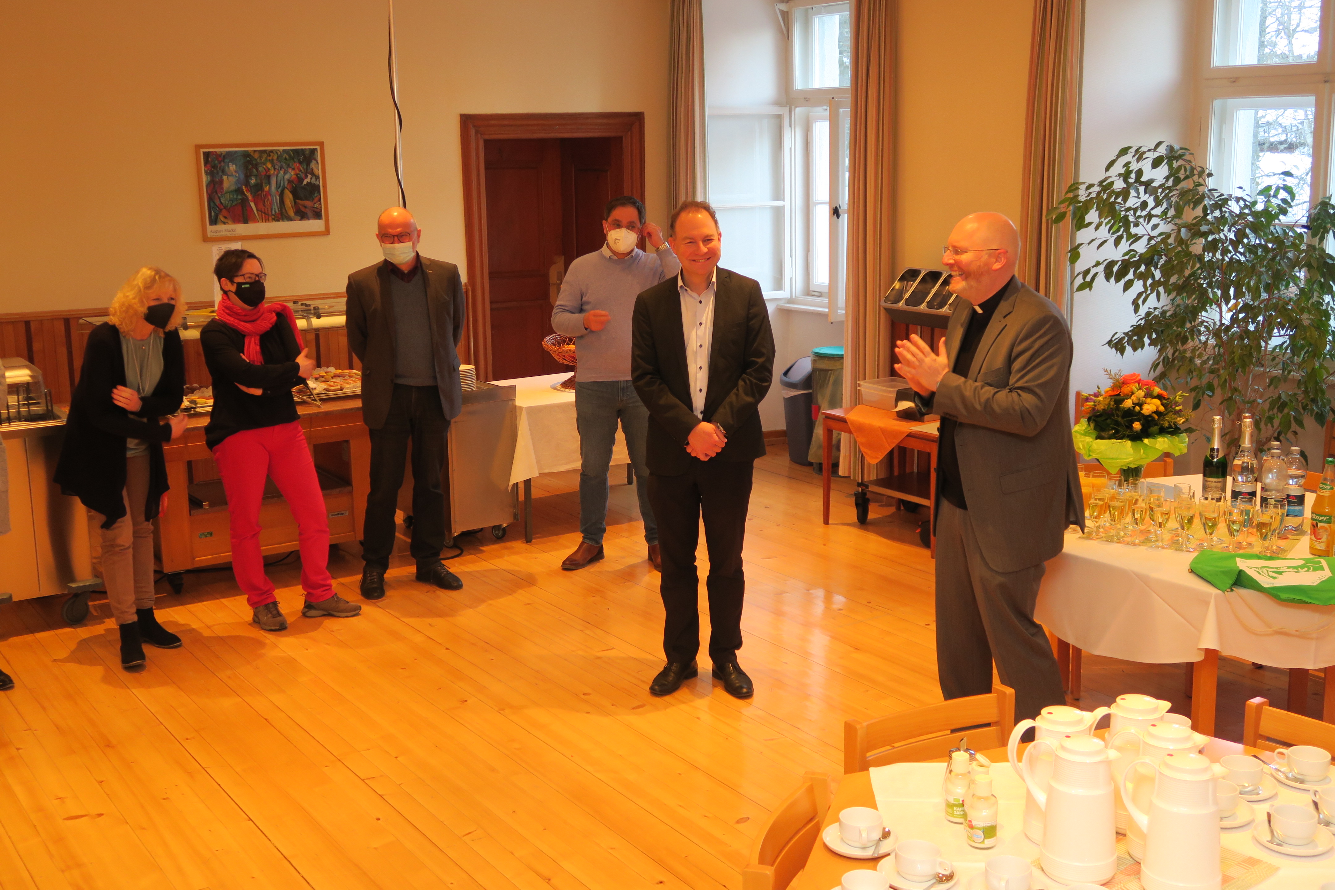 In diesen Tagen findet der Stabwechsel in der Geschäftsleitung am Kolleg statt. Wegen der Coronalage konnte leider keine Verabschiedung von Daniel Poznanski in größerem Rahmen mit externen Gästen stattfinden. Daher fand am Dienstagvormittag (25. Januar) eine kleine Zusammenkunft statt, um Herrn Poznanski gebührend zu danken und persönlich „Auf Wiedersehen“ sagen zu können. Kollegsdirektor P. Rieder SJ würdigte in dieser Feierstunde seinen unermüdlichen Einsatz und seine großen Verdienste für das Kolleg in den vergangenen sieben Jahren. Wir wünschen ihm von Herzen alles Gute und Gottes Segen! Christian Niederhofer übernimmt ab 1. Februar den Posten des Wirtschaftsleiters am Kolleg.