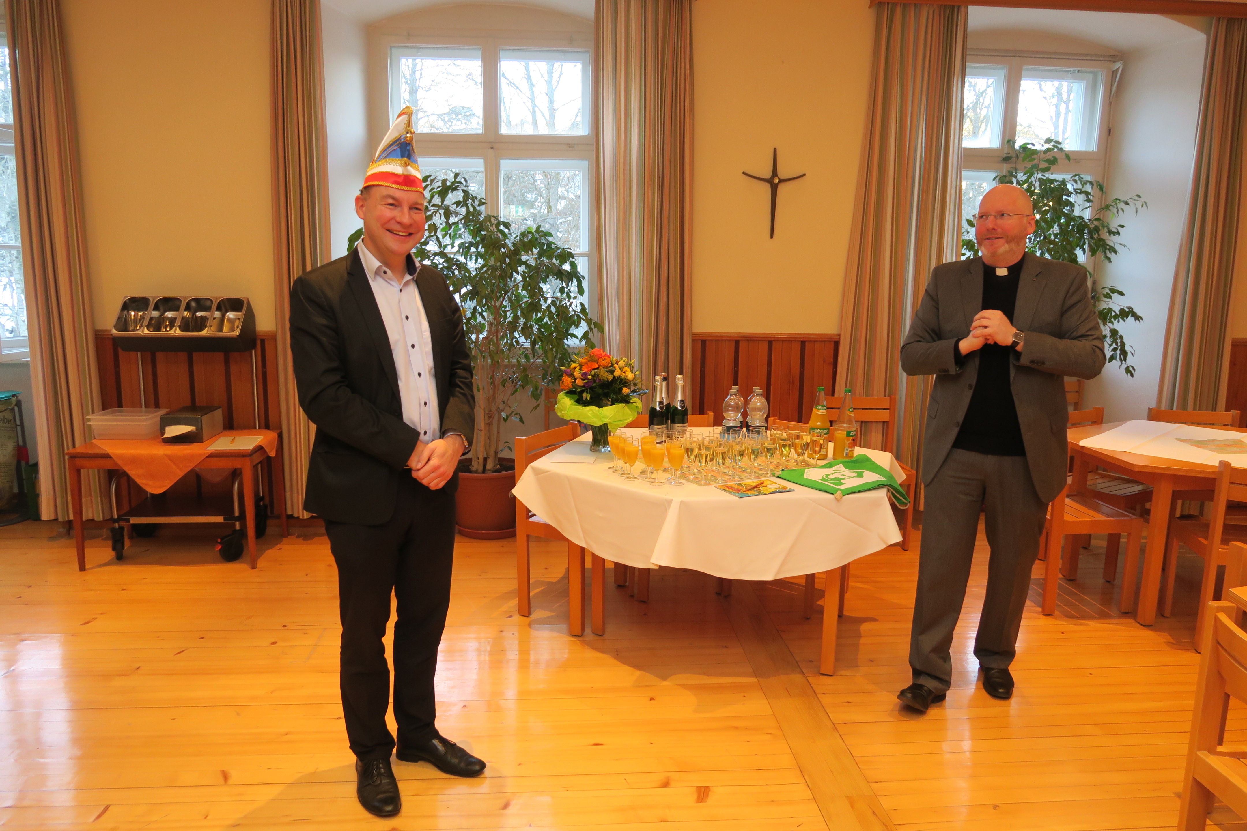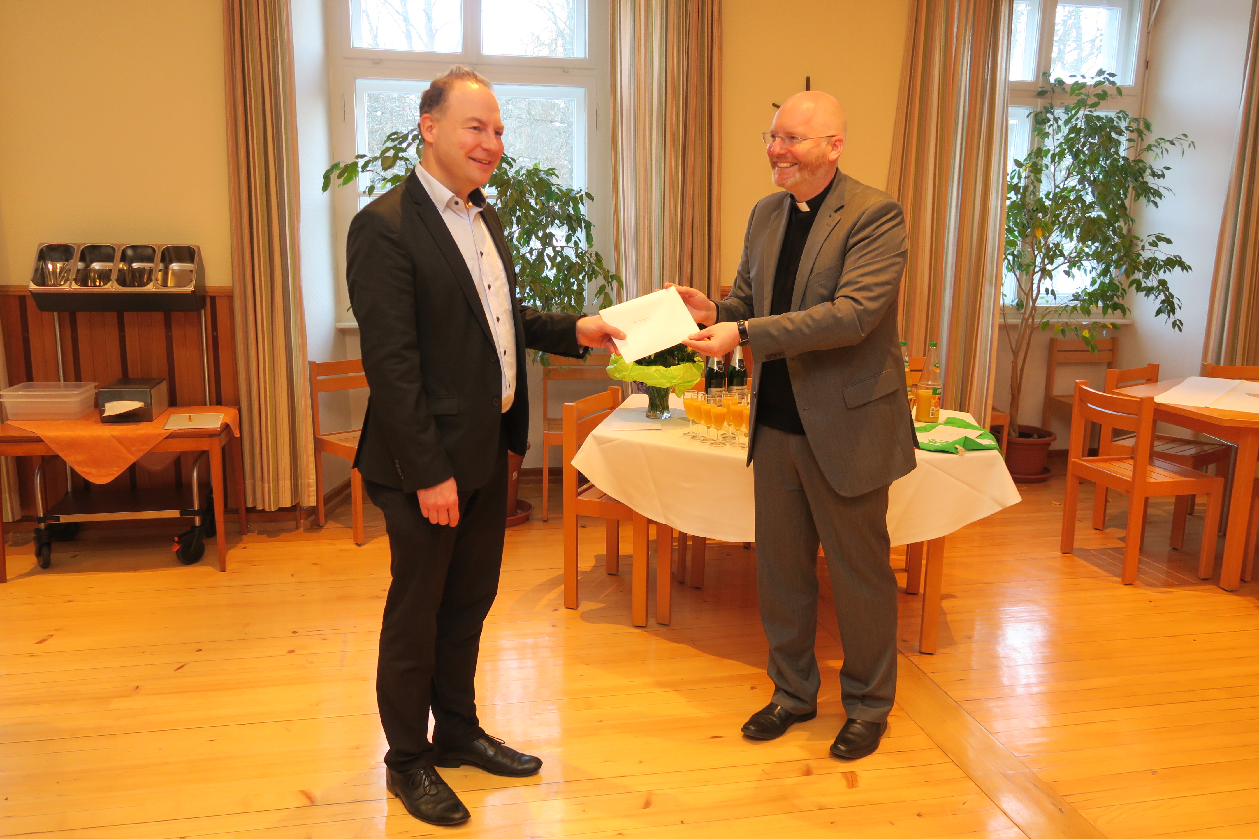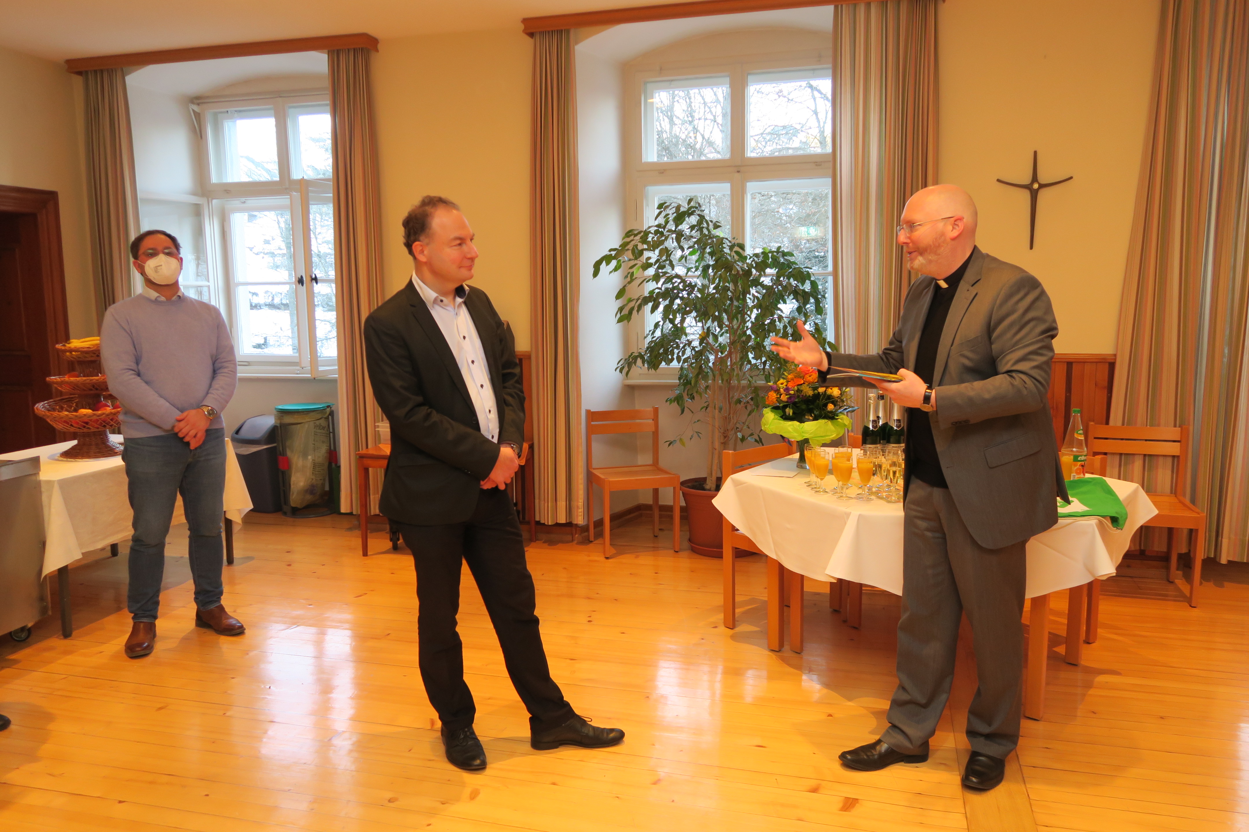 In diesen Tagen findet der Stabwechsel in der Geschäftsleitung am Kolleg statt. Wegen der Coronalage konnte leider keine Verabschiedung von Daniel Poznanski in größerem Rahmen mit externen Gästen stattfinden. Daher fand am Dienstagvormittag (25. Januar) eine kleine Zusammenkunft statt, um Herrn Poznanski gebührend zu danken und persönlich „Auf Wiedersehen“ sagen zu können. Kollegsdirektor P. Rieder SJ würdigte in dieser Feierstunde seinen unermüdlichen Einsatz und seine großen Verdienste für das Kolleg in den vergangenen sieben Jahren. Wir wünschen ihm von Herzen alles Gute und Gottes Segen! Christian Niederhofer übernimmt ab 1. Februar den Posten des Wirtschaftsleiters am Kolleg.