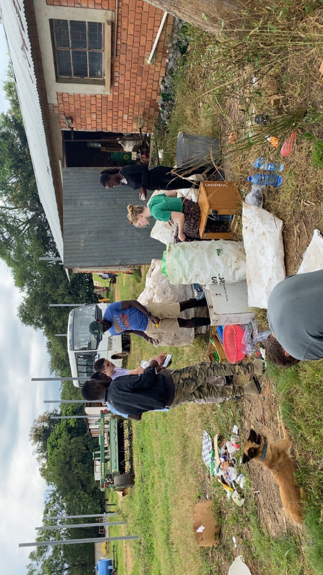 Im KATC wurde vor knapp 5 Jahren eine Recyclingstation für Plastikflaschen eingerichtet. Sie liegt wegen Zeitmangel seit längerem brach. Wir treffen uns mit den drei DiplomandInnen des KATC dort und werfen den Plastikschredder an. Er läuft wie am Schnürchen, was uns motiviert an die Arbeit gehen lässt. Der riesige Haufen an Plastikflaschen, der den Schuppen dominiert, wird nach Farben sortiert und wir starten damit, die Flaschen zu kleinen Plastikschnipseln zu schreddern. Leider hat es nicht mehr geklappt, die Spritzgussform in Deutschland zu besorgen, mithilfe derer diese Schredder zu neuem Leben verholfen werden kann – ein wichtiger Schritt in einem Land, in dem jedweder Müll entweder in Senken deponiert oder verbrannt wird. Astrida und ihre Kollegen haben hier die Gelegenheit, in den nächsten Monaten etwas Geld zu verdienen, das als Aufstockung der umgerechnet 15 Euro, die sie zusätzlich zur Verfügung haben, dienen kann. Insofern sie sich an die Arbeit machen.