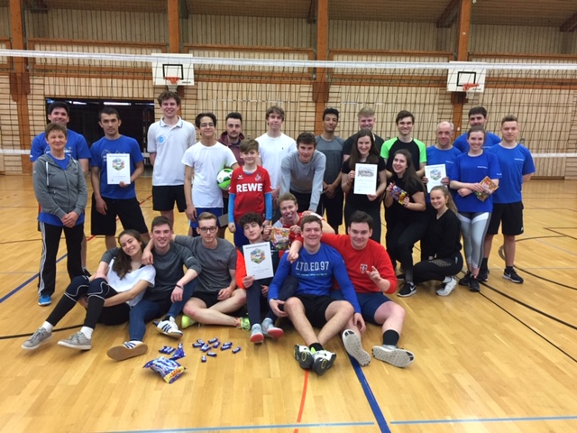 Bereits zum 32. Mal wurden am letzten Samstag (7. März) in der Pater-Alfred-Delp-Halle die kollegsinternen Meisterschaften im Volleyball ausgetragen. Sechs Mannschaften traten an, um sich zu messen und gemeinsam Freude am Sport zu haben. Kollegsmeister 2020 darf sich das Team SV Bläsi nennen – herzlichen Glückwunsch! Die weiteren Platzierungen bis Platz 6 belegten: Team Noah, Team Xaver, Team Hanna, Kappa Klaus und Pädagogen Express. Turnierorganisator Herr Detta freute sich über ein tolles Turnier.