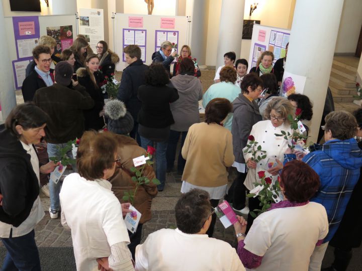 Zum Weltfrauentag am 8. März fand am Kolleg eine kreative Veranstaltung vom Mädcheninternat und unserer Amnesty-Gruppe in der Altbaupforte statt. Neben interessanten Infotafeln zu den Themen „Fair Trade – Flower to the People“, „Chancengleichheit – Landtagswahl 2016“ und „Terre de Femme – Menschenrechte in zehn Sprachen“ wurden in der großen Pause am Dienstagvormittag Fairtrade-Rosen an unsere Mitarbeiterinnen überreicht. Frauen auf der ganzen Welt machen am 8. März mit Aktionen auf die Rechte und Gleichberechtigung aufmerksam, die in vielen Teilen der Welt noch keine Realität sind.