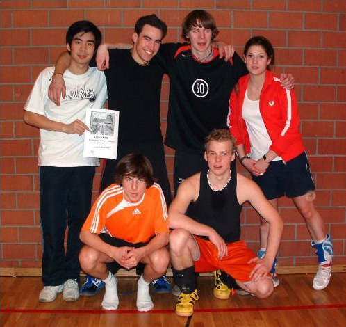 Wir beglückwünschen das Team "Just Us" mit Michael Haselbacher, Florian Haselbacher, Janis v. Koerber, Madeleine Müller, Tobias Mauz und Viet Duc Bui zum neuen Volleyballmeister 2008 am Kolleg. In einem sensationellen Finalspiel am gestrigen Sonntag Nachmittag bezwangen die Gewinner in drei sehr spannenden Gewinnsätzen das Team "Haselnuss-Knacker". Den 3. Platz erreichte das Team "The Crazys" vor "Think positive".