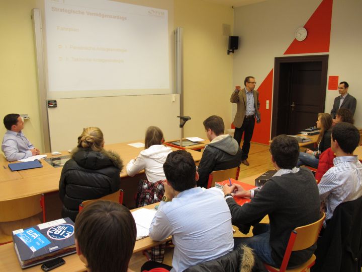 Seit vielen Jahren besteht die Bildungspartnerschaft zwischen der Freiburger Vermögensmanagement GmbH (FVM) und dem Kolleg, um auch das Thema ökonomische Bildung und spezifische Kompetenzen im Schulunterricht aktiv zu fördern – das Wissen von und über Wirtschaft. Herr Claus Walter und Herr Mathias Gutmann von der FVM übernahmen am Mittwochvormittag die Gestaltung des Wirtschaftskurses von Herrn Dr. Schilling und referierten praxisnah zum Thema „Strategische Vermögensanlage“. Die verschiedenen Anlageformen und die persönliche Anlagestrategie standen im Mittelpunkt des Unterrichts von der Klassenstufe 12. Dieses gelungene Projekt ist ein Baustein im Rahmen der Bildungskooperation.