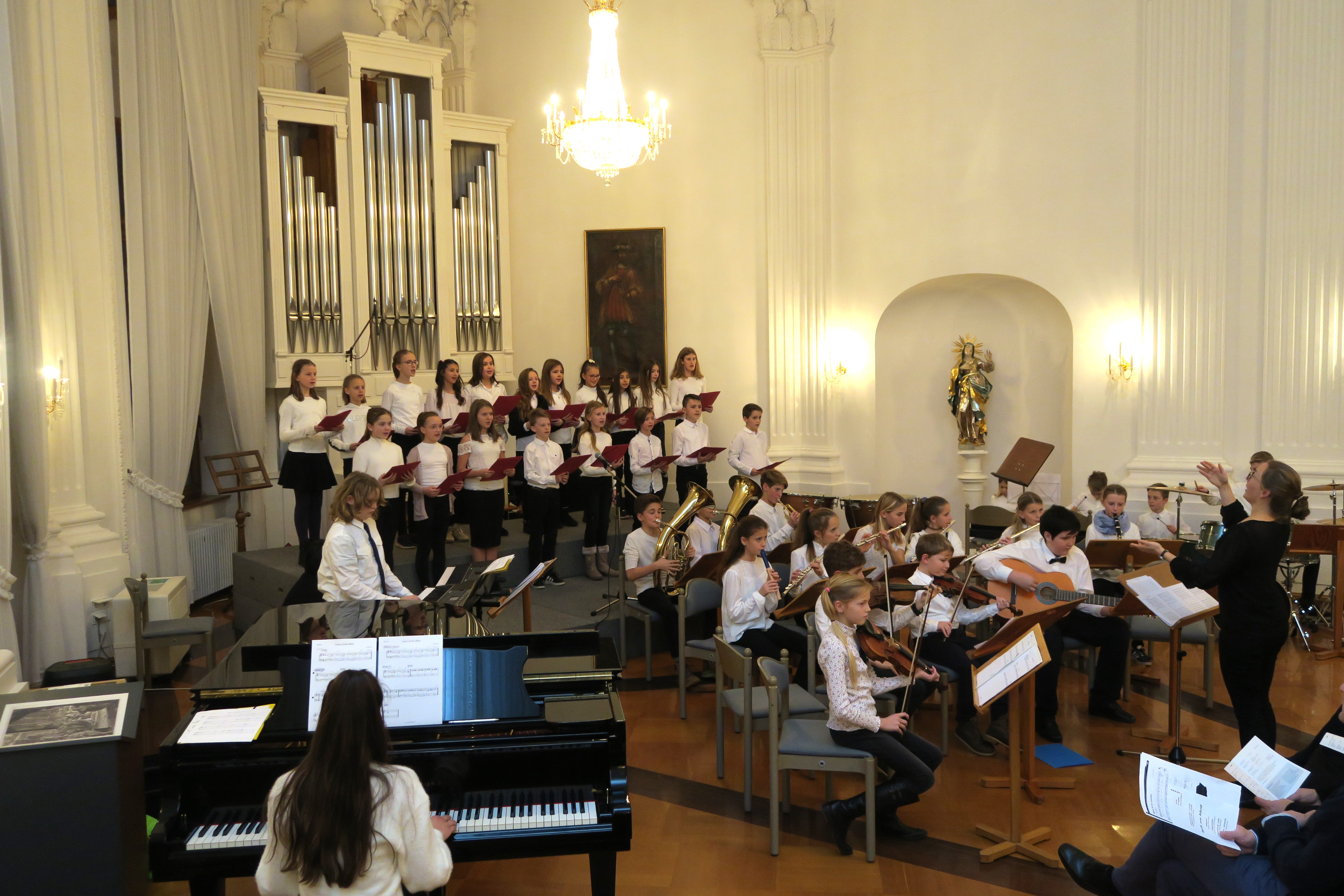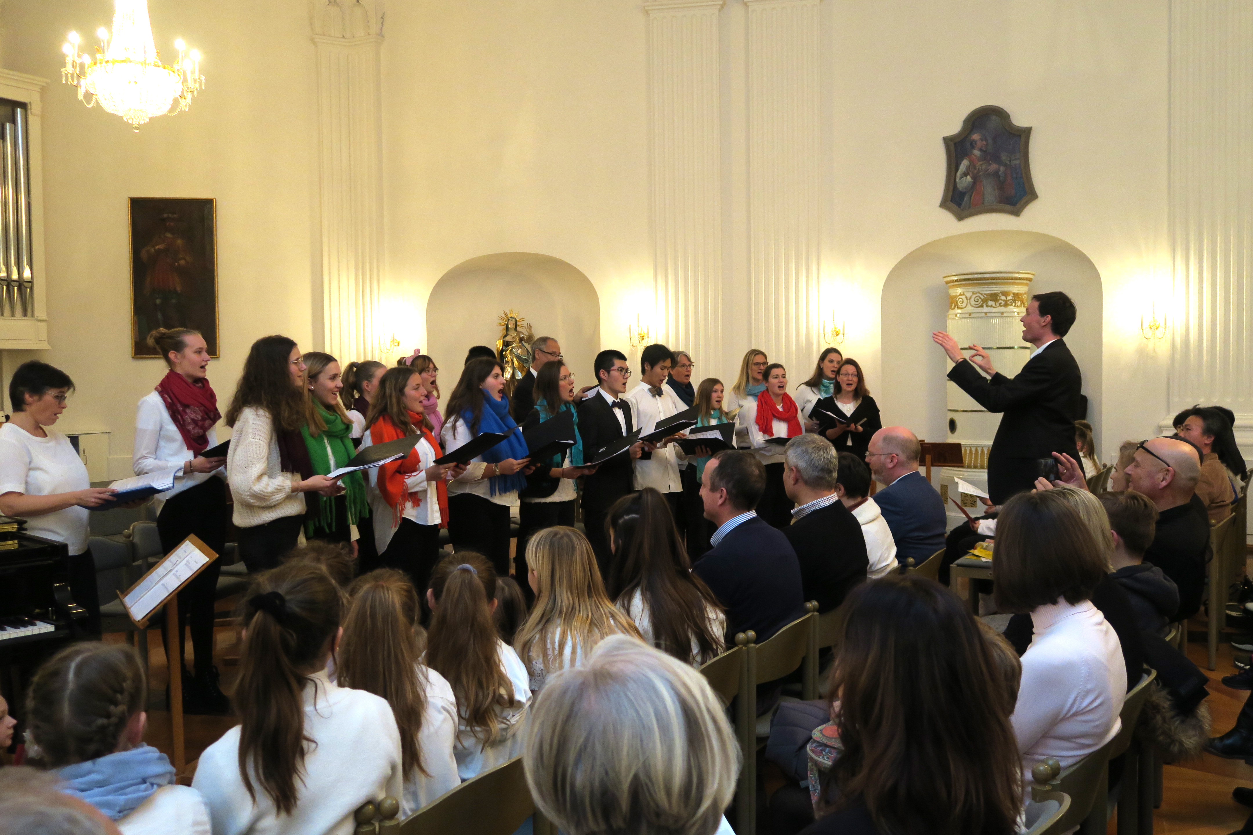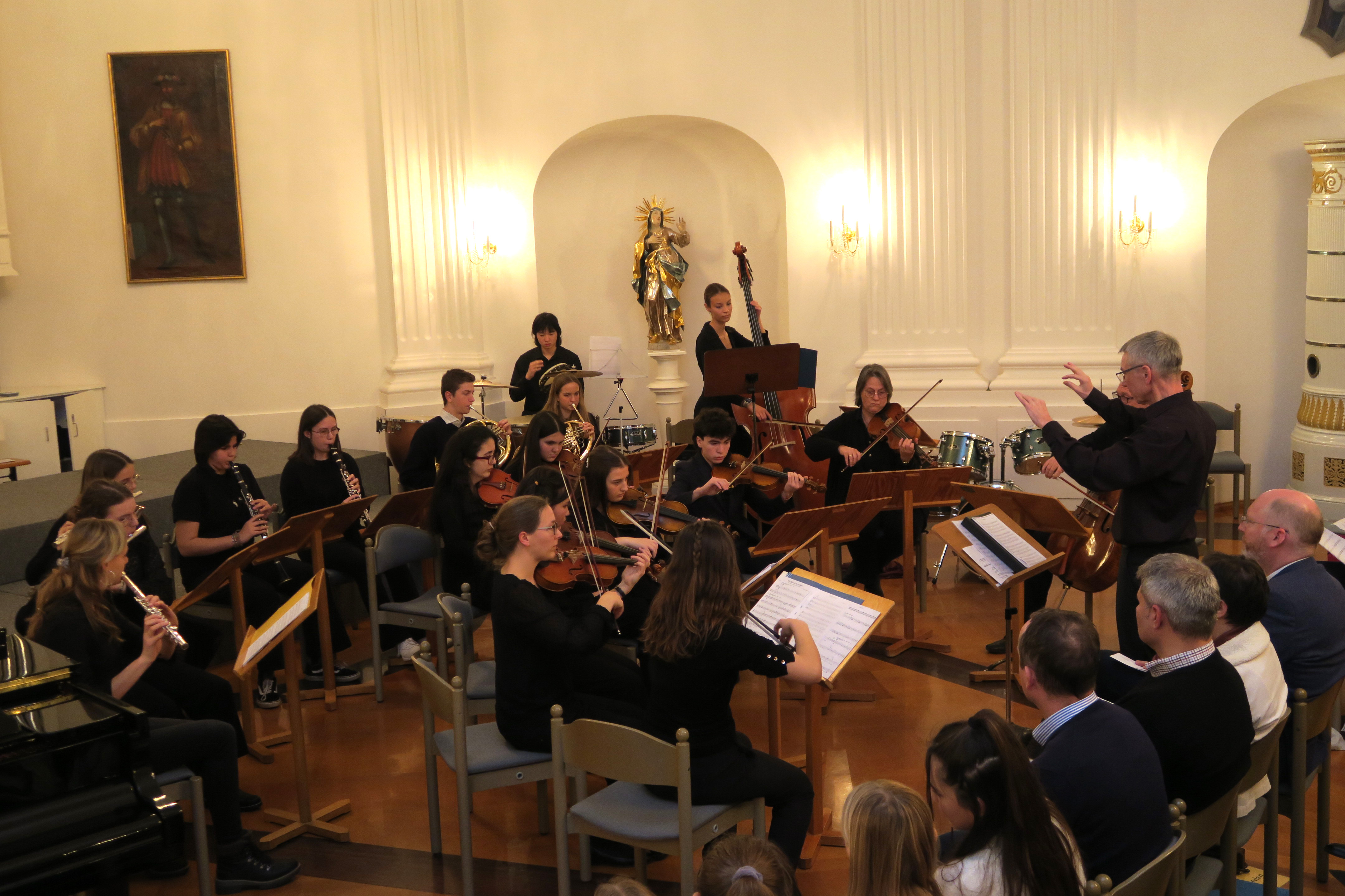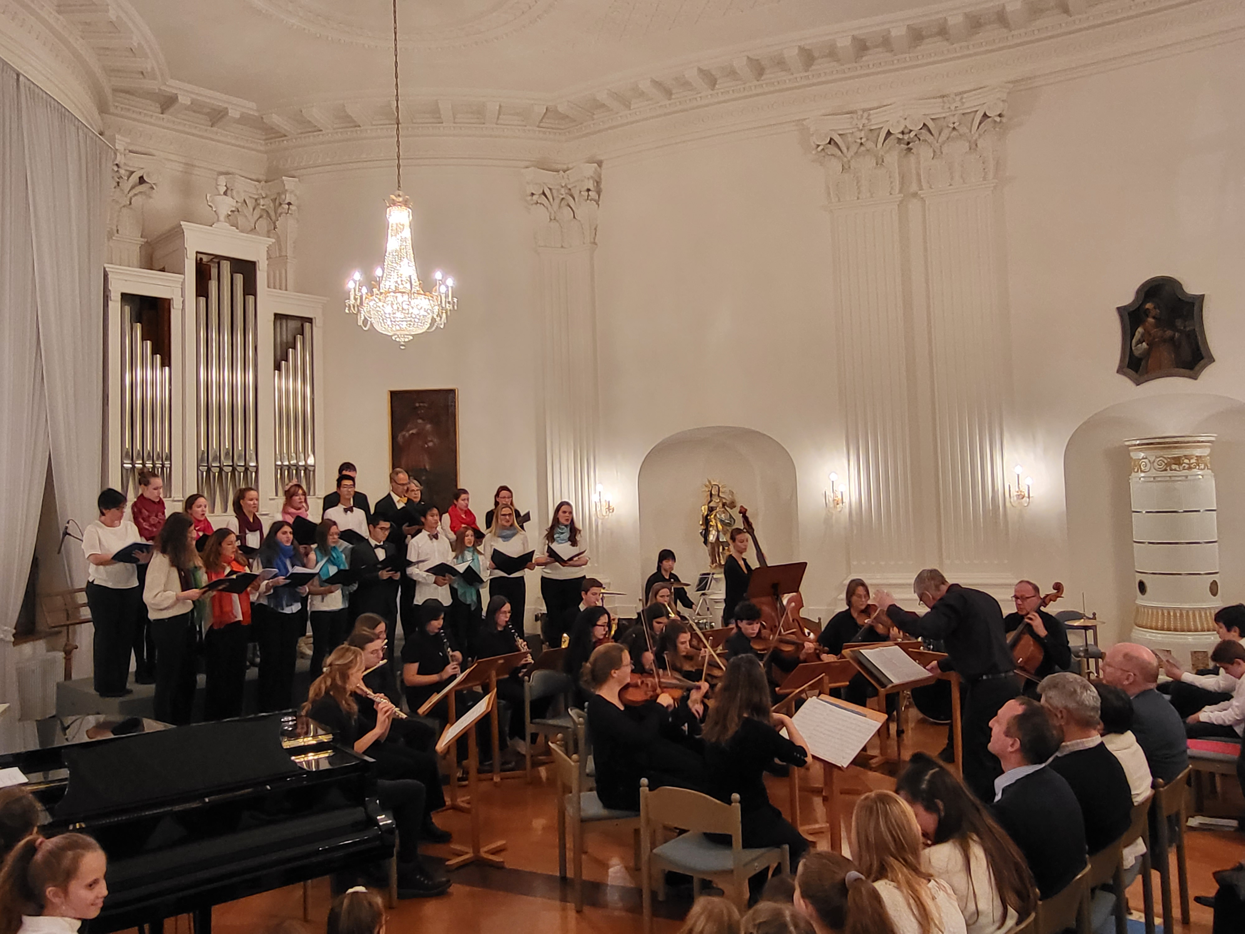 Zauberhafte Adventsmusik im wunderschönen Festsaal läutete am vergangenen zweiten Adventswochenende die Vorweihnachtszeit am Kolleg feierlich ein. Die beiden gelungenen Adventskonzerte mit ansprechenden Arrangements waren ein wunderbares Einklingen der festlichen Weihnachtszeit. Zahlreiche Zuhörer im proppenvollen Festsaal des Kollegs konnten 75 Minuten wieder dieses musikalische Ereignis „live“ genießen. Die verschiedenen musikalischen Gruppierungen – Unterstufenorchester (Leitung: Viola Grömminger), Unterstufenchor (Maria Backhaus), Kollegschor (Florian Auls) und Kollegsorchester (Klaus Weißenbach) - brachten adventliche Musik verschiedenster Epochen zu Gehör. Eine Presseresonanz über das Konzertereignis gibt es in der Badischen Zeitung.
