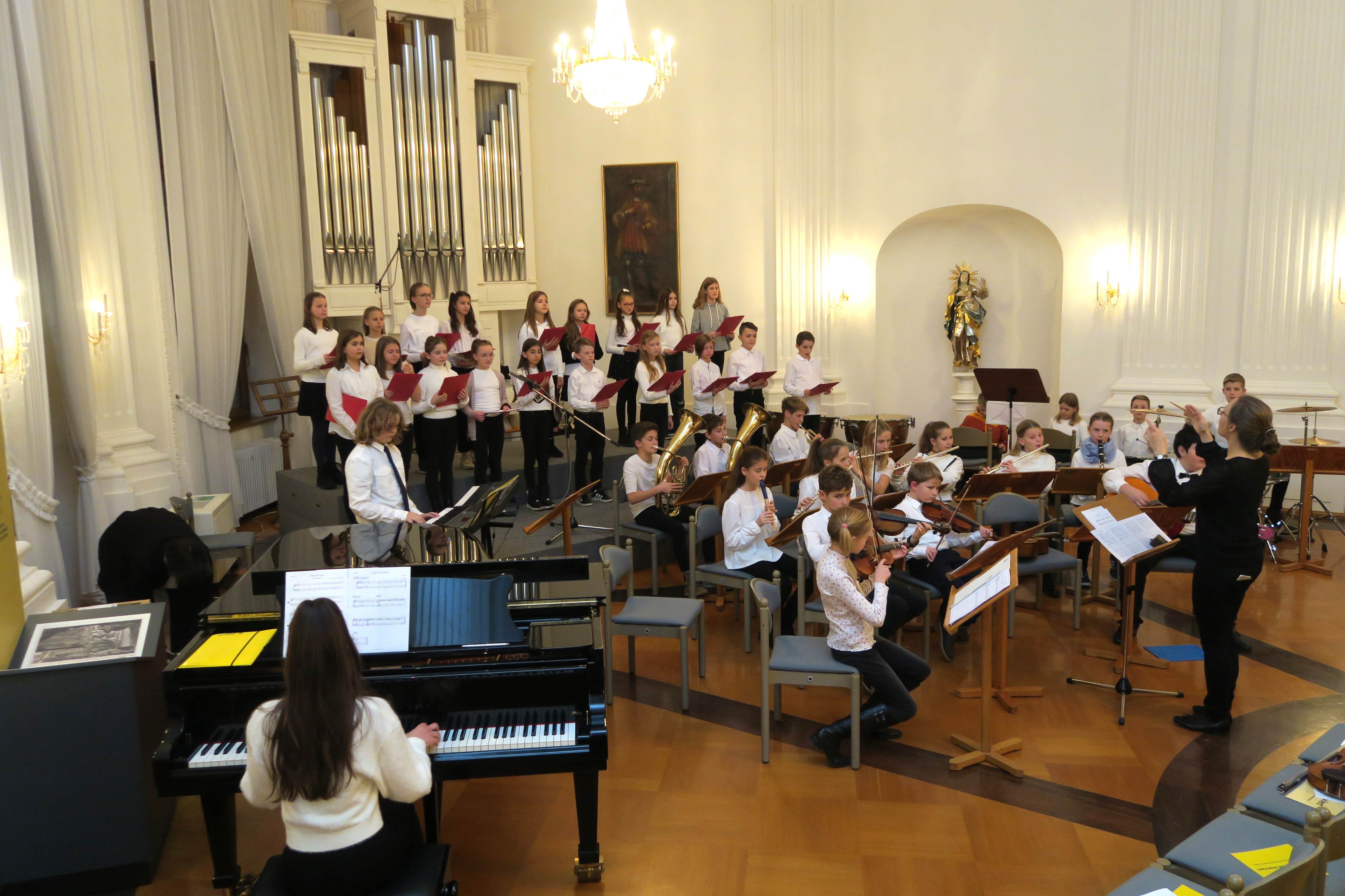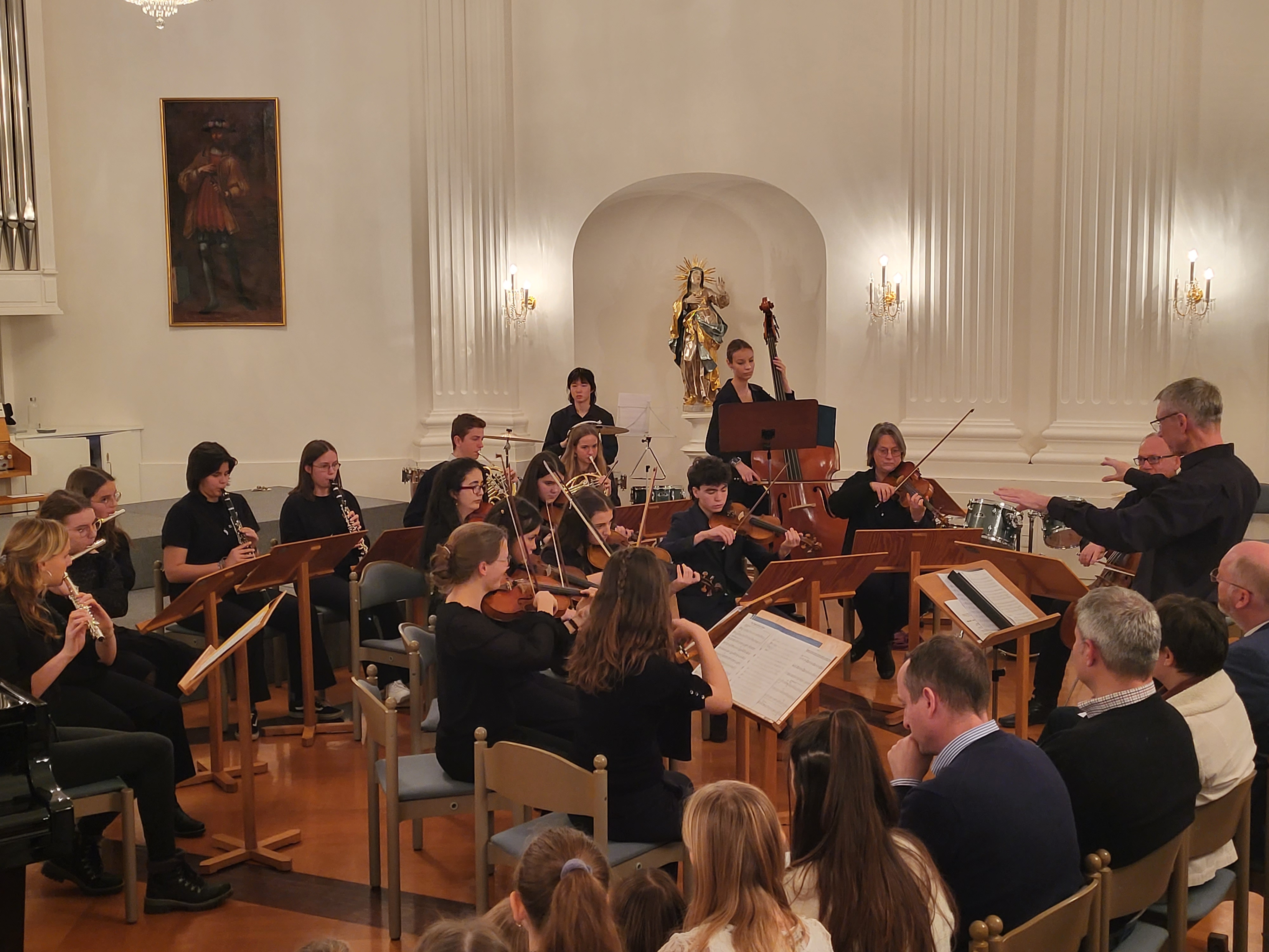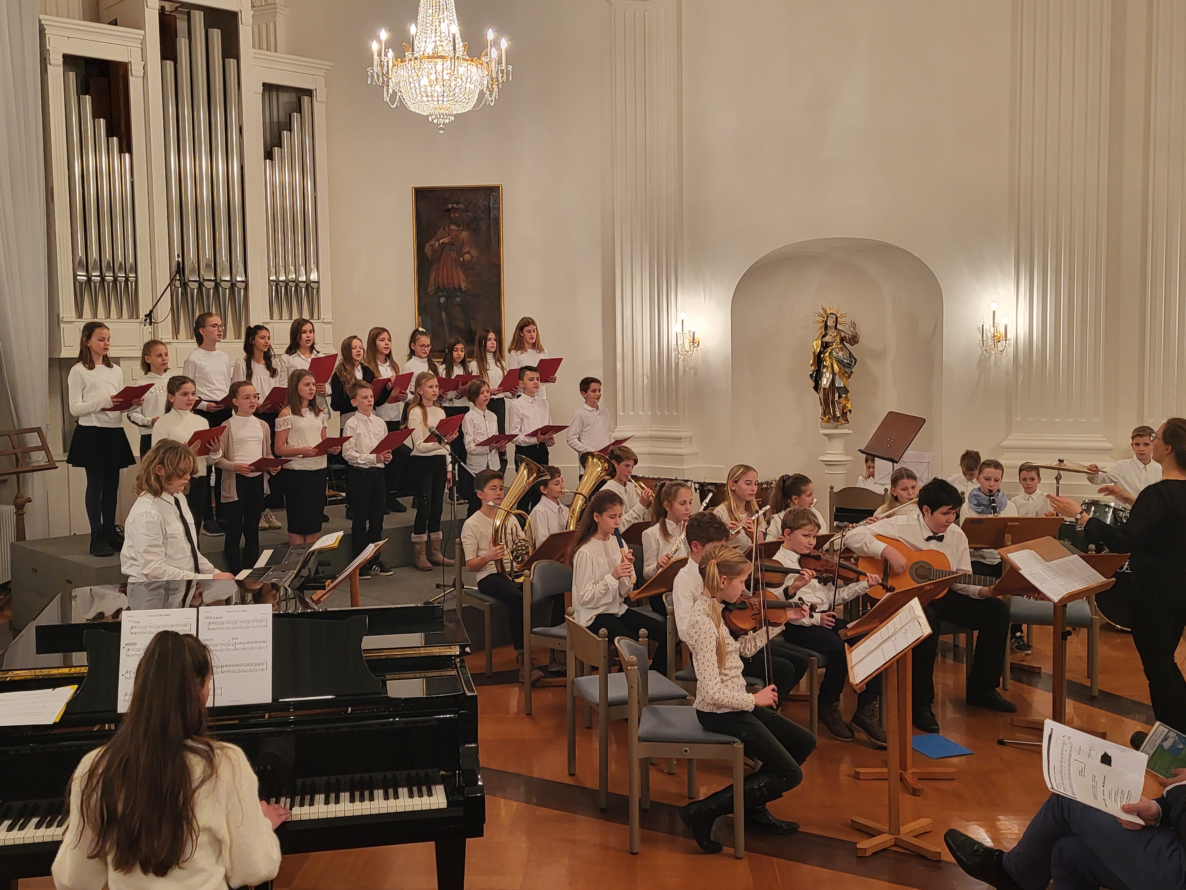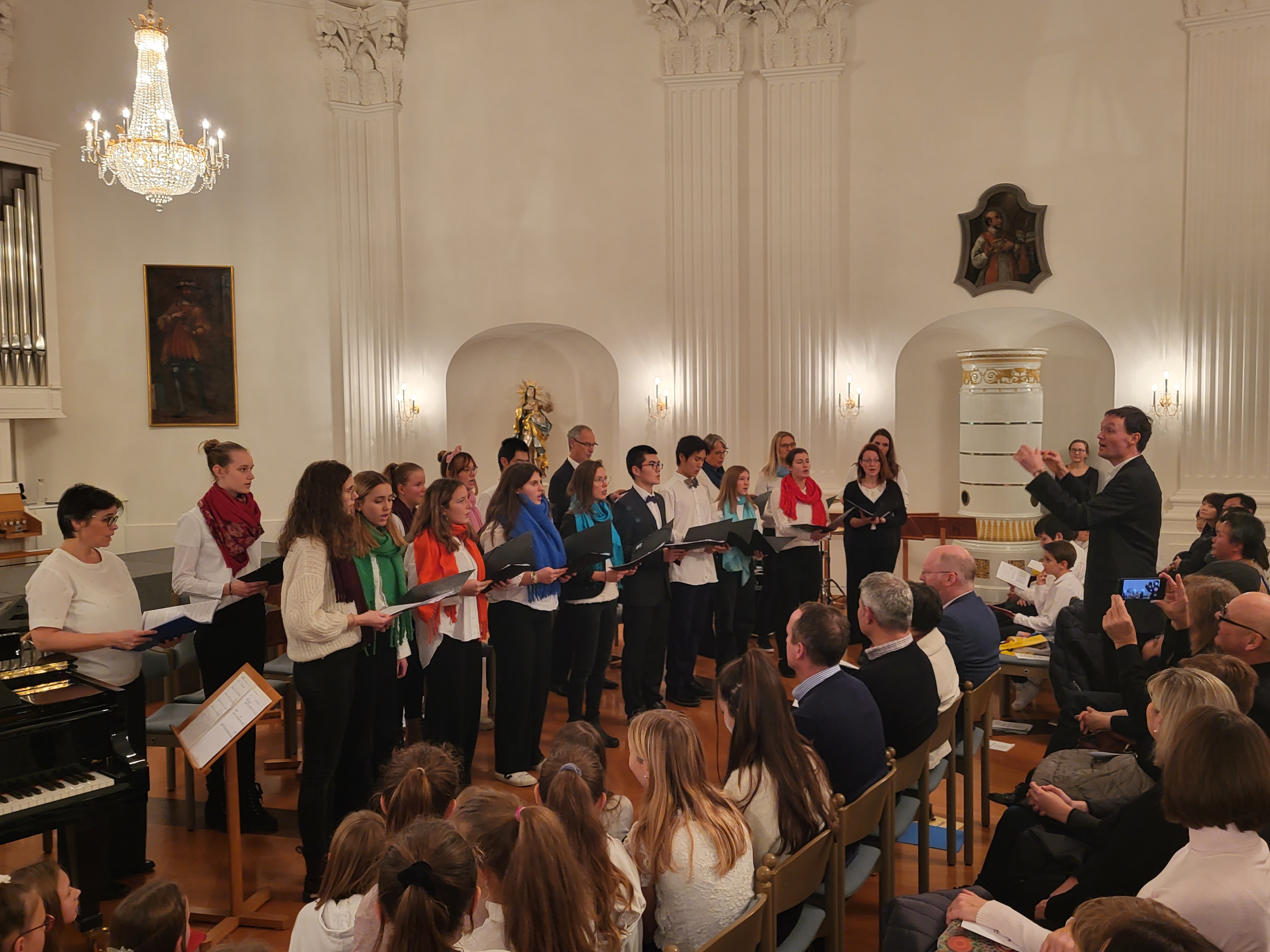 Zauberhafte Adventsmusik im wunderschönen Festsaal läutete am vergangenen zweiten Adventswochenende die Vorweihnachtszeit am Kolleg feierlich ein. Die beiden gelungenen Adventskonzerte mit ansprechenden Arrangements waren ein wunderbares Einklingen der festlichen Weihnachtszeit. Zahlreiche Zuhörer im proppenvollen Festsaal des Kollegs konnten 75 Minuten wieder dieses musikalische Ereignis „live“ genießen. Die verschiedenen musikalischen Gruppierungen – Unterstufenorchester (Leitung: Viola Grömminger), Unterstufenchor (Maria Backhaus), Kollegschor (Florian Auls) und Kollegsorchester (Klaus Weißenbach) - brachten adventliche Musik verschiedenster Epochen zu Gehör. Eine Presseresonanz über das Konzertereignis gibt es in der Badischen Zeitung.