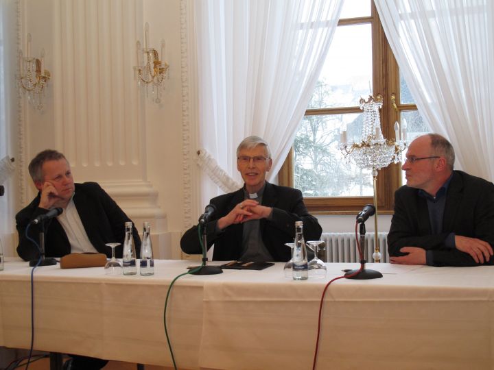 Aus Anlass des Zweiten Vatikanischen Konzils vor 50 Jahren fand eine Gesprächsrunde zu diesem richtungsweisenden Ereignis mit dem Zeitzeugen, Weihbischof Dr. Paul Wehrle, statt. Zu Beginn führten Oberstufenschüler umfassend in diese zentrale Kirchenreform des 20. Jahrhunderts ein. Anschließend knüpfte der emeritierte Weihbischof an seiner Freiburger Studienzeit an und erinnerte an das breite Spektrum von Denkschulen. „Die Zeichen der Zeit zu erforschen und sie im Licht des Evangeliums zu deuten“, mit diesem Auftrag aus der pastoralen Konstitution (Gaudium et spes) über die Kirche in der Welt von heute entfaltete Weihbischof Wehrle, was bisher erreicht wurde und was noch nicht eingelöst wurde. Im dritten Teil fand eine Diskussion mit Kollegianern im Festsaal zum nachhaltigen Wandel des Konzils statt.